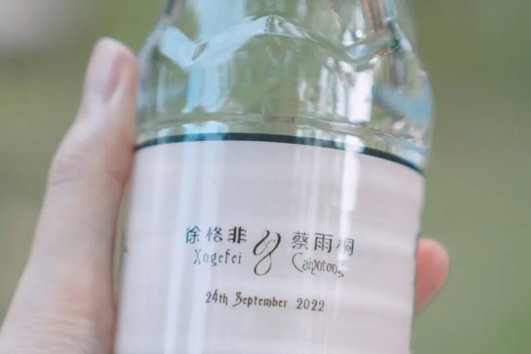 里面的喜糖零食明显能看出来是选择过的让人喜欢吃的,而不是那些套路的大多数人随手就会丢弃的喜糖,还有印着他们名字和logo的矿泉水,还有湿巾等各种贴心的小物件。