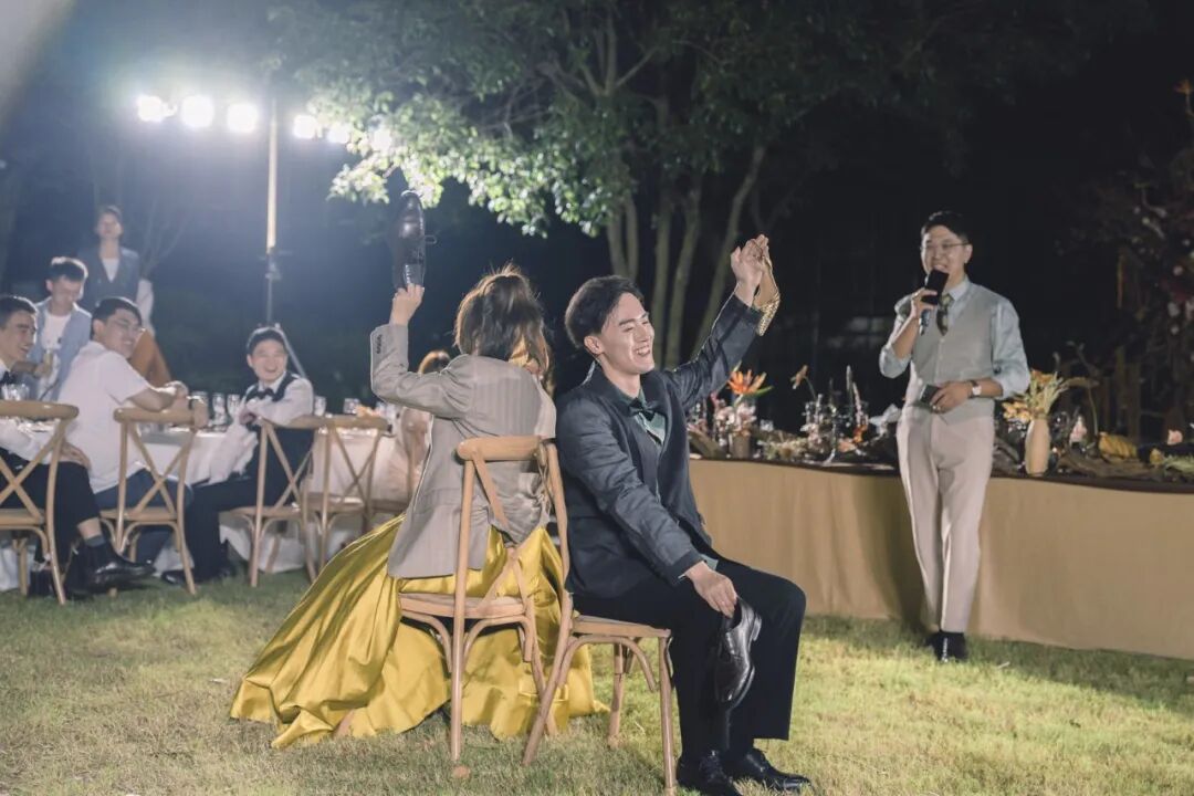 当时新郎新娘的大学同学发言,写的词太好了,全程她都在哭,那种真情实感和写的内容比新郎新娘的誓词还让我动容。他们好几个大学同学都来了,有上台发言的,还有party上唱歌的,尤克里里弹唱的,那种感情真的在场每个人都能感觉到的真诚。