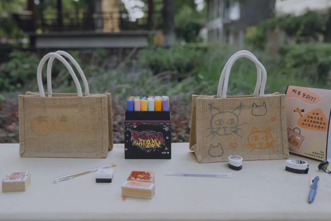 伴手礼是麻的小袋子,小众文艺,可以拿马克笔自己DIY。