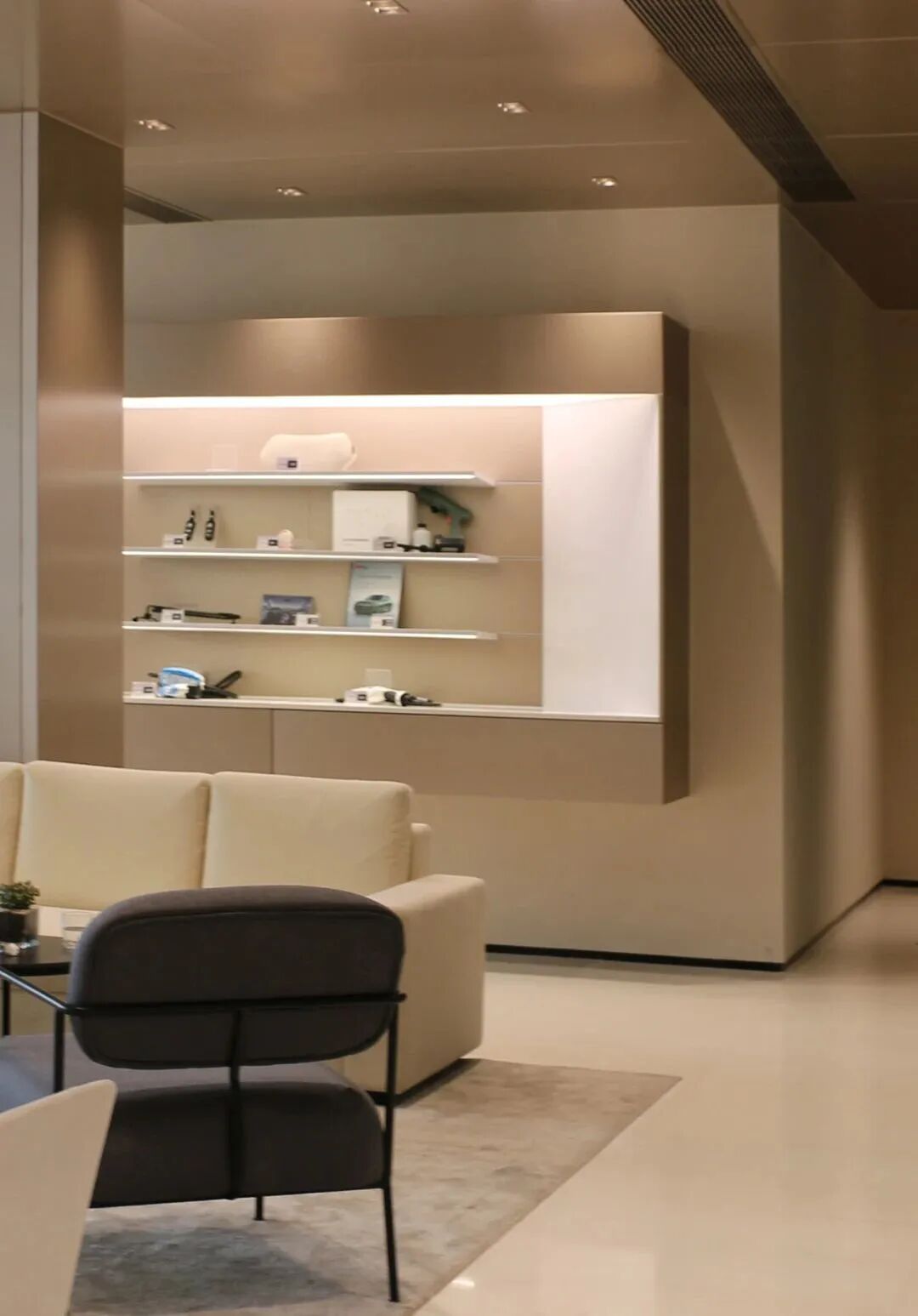 洽谈区与精品区做了适当的隔档,提高私密性的同时不会为整体空间造成明显的分割感。