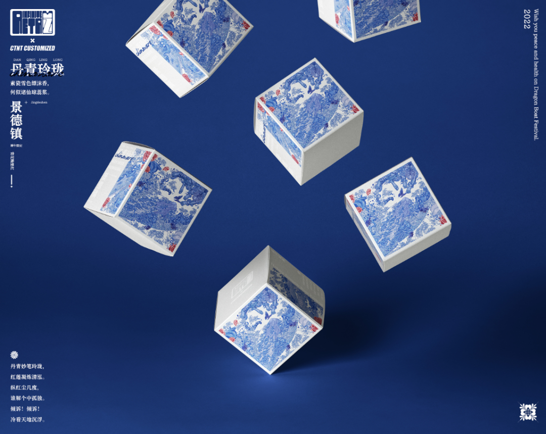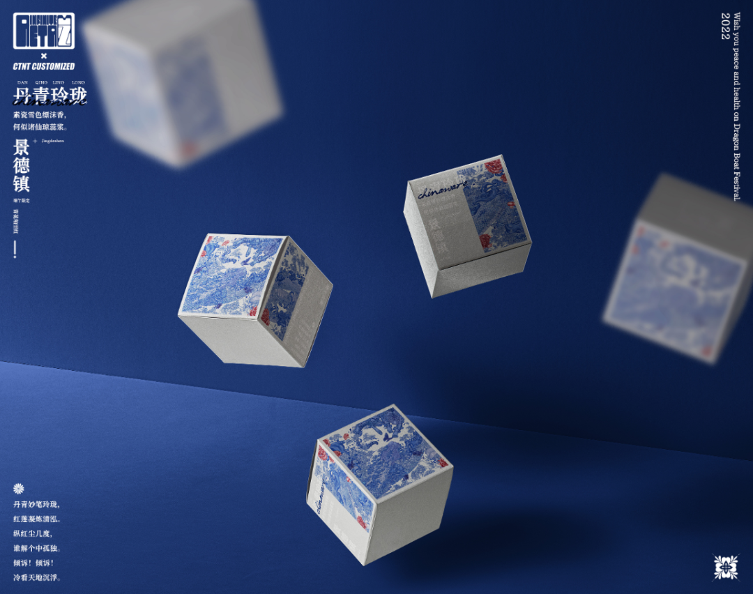 以中国瓷器的主流品种之一--青花瓷为灵感