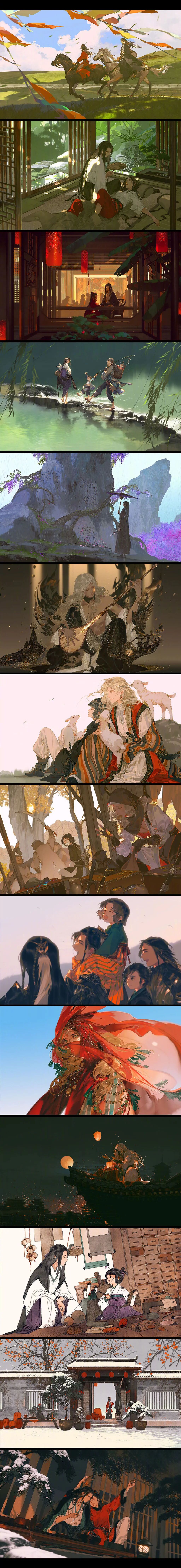伊吹太太所绘的古代世界风采万千,“天高任翱翔、海阔任鱼飞”在她的笔下得到了很好的体现,她笔下的江湖人物形象鲜明,华丽沉静,自带一种武侠气息,古香古色,韵味十足,。