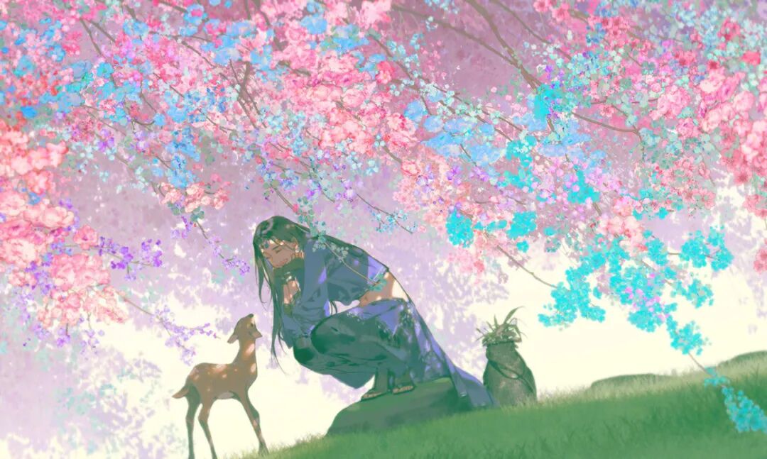 伊吹太太的画以浪漫唯美的古典人文为主,兼顾角色和场景,追求极致的古典美学,非常有辨识度。她用电脑作画,用CG表现出丹青山黛的水墨之感,大量融合水墨和水彩的画风和技法,整体呈现出浓浓的中国风,营造出沁人心脾的氛围感,素雅又精致。