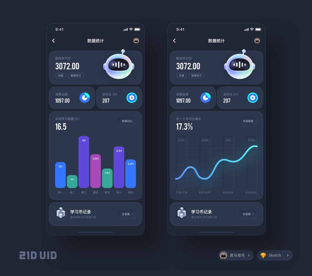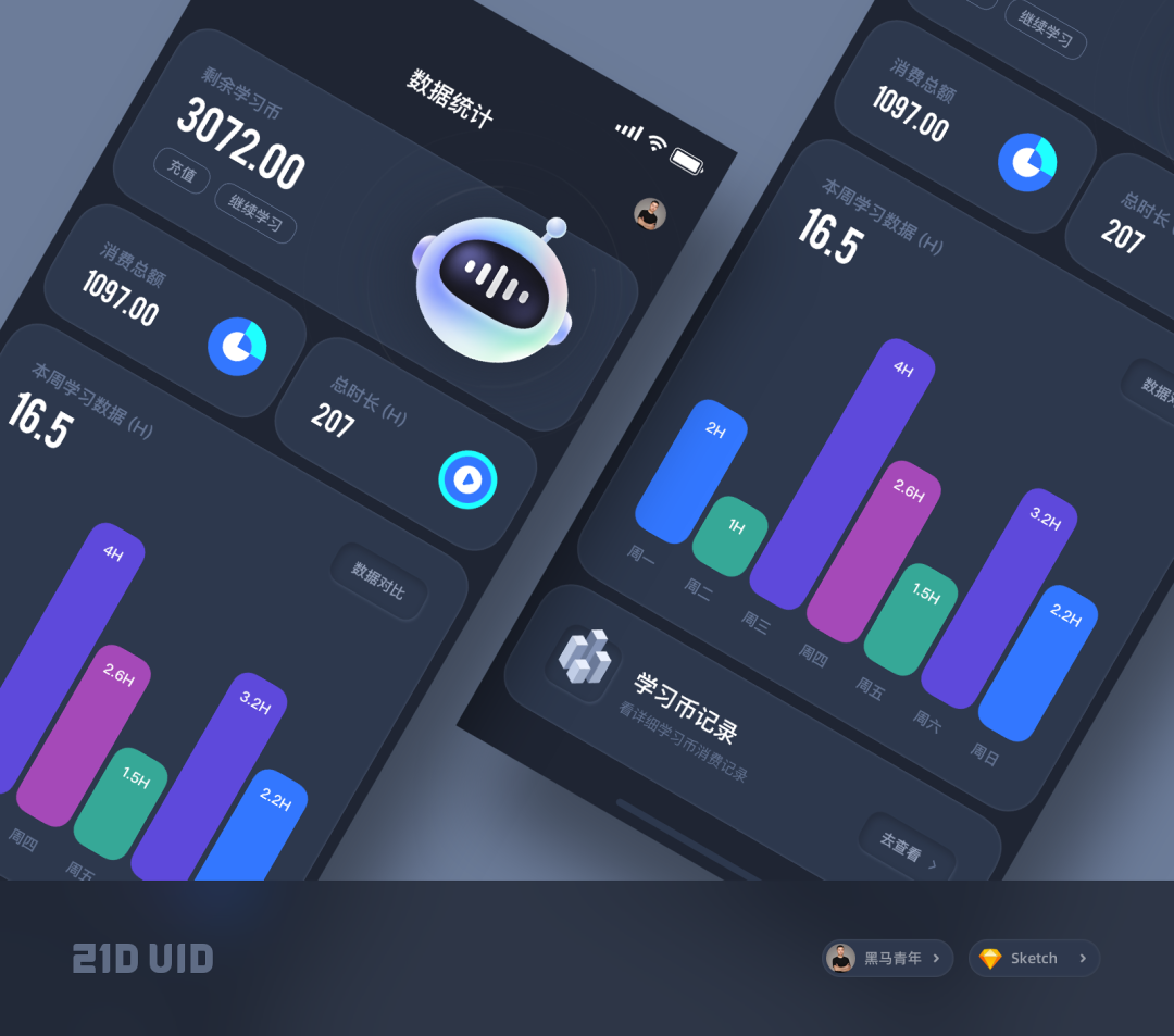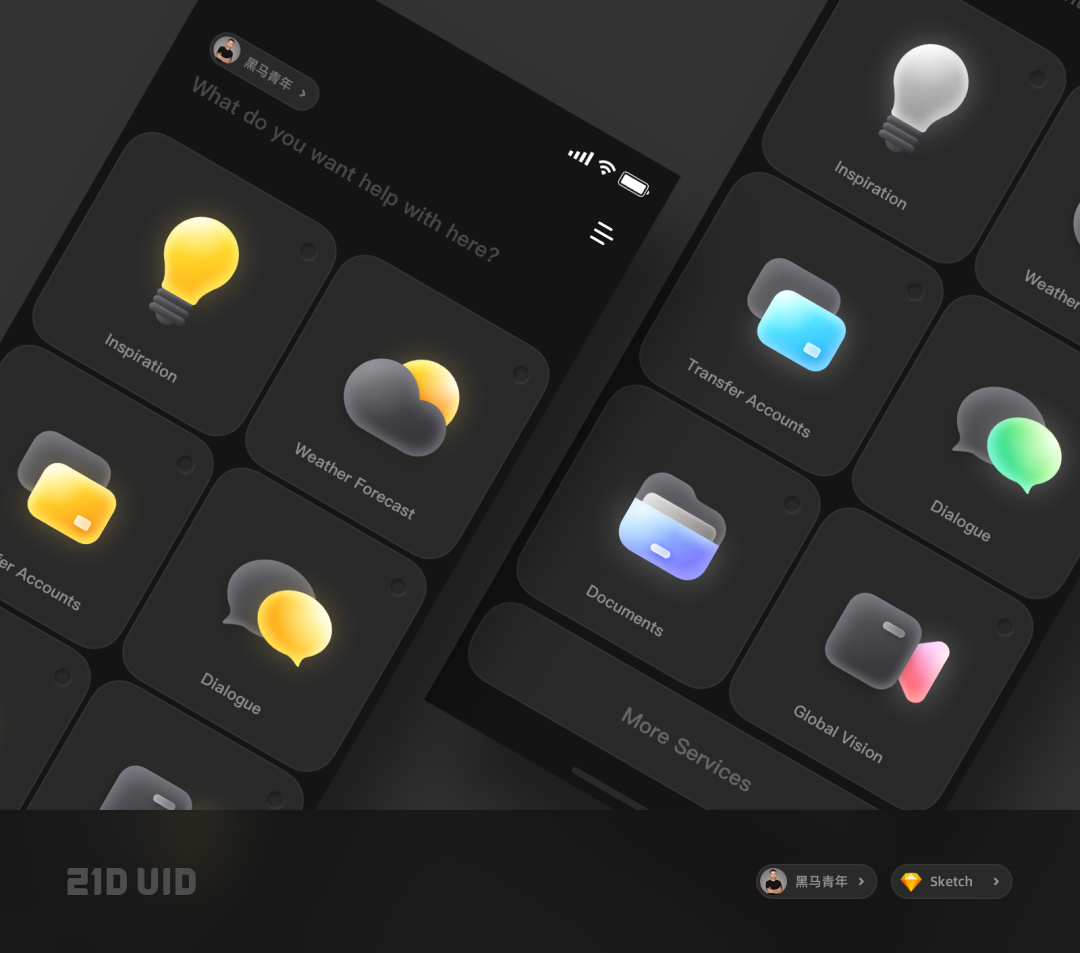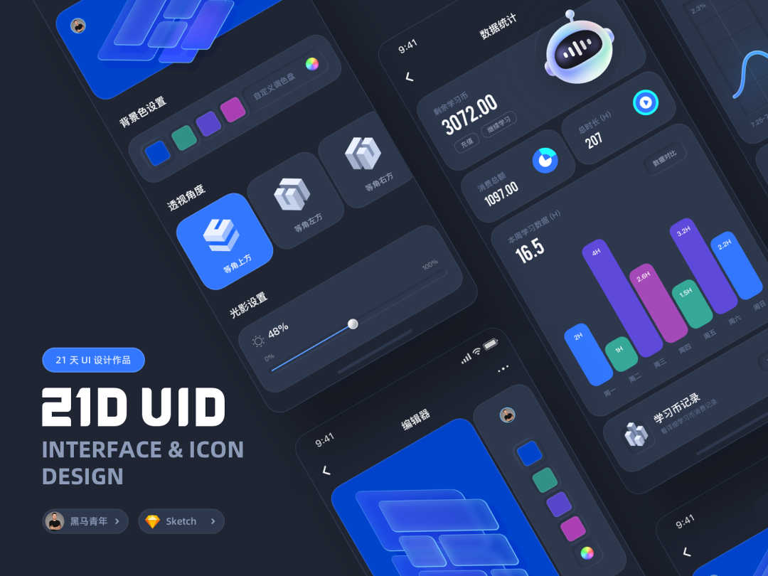 相信很多同学都遇到过作品被质疑没有亮点,设计作品显得平平无奇,总是没有一个像样的作品拿出手……。提高作品亮点的方向很多,对于 UI 设计作品来说,图标设计就是至关重要的一环就像下面一组黑马哥之前输出的作品一样,其中图标设计就是提高这一组作品亮点的关键所在。