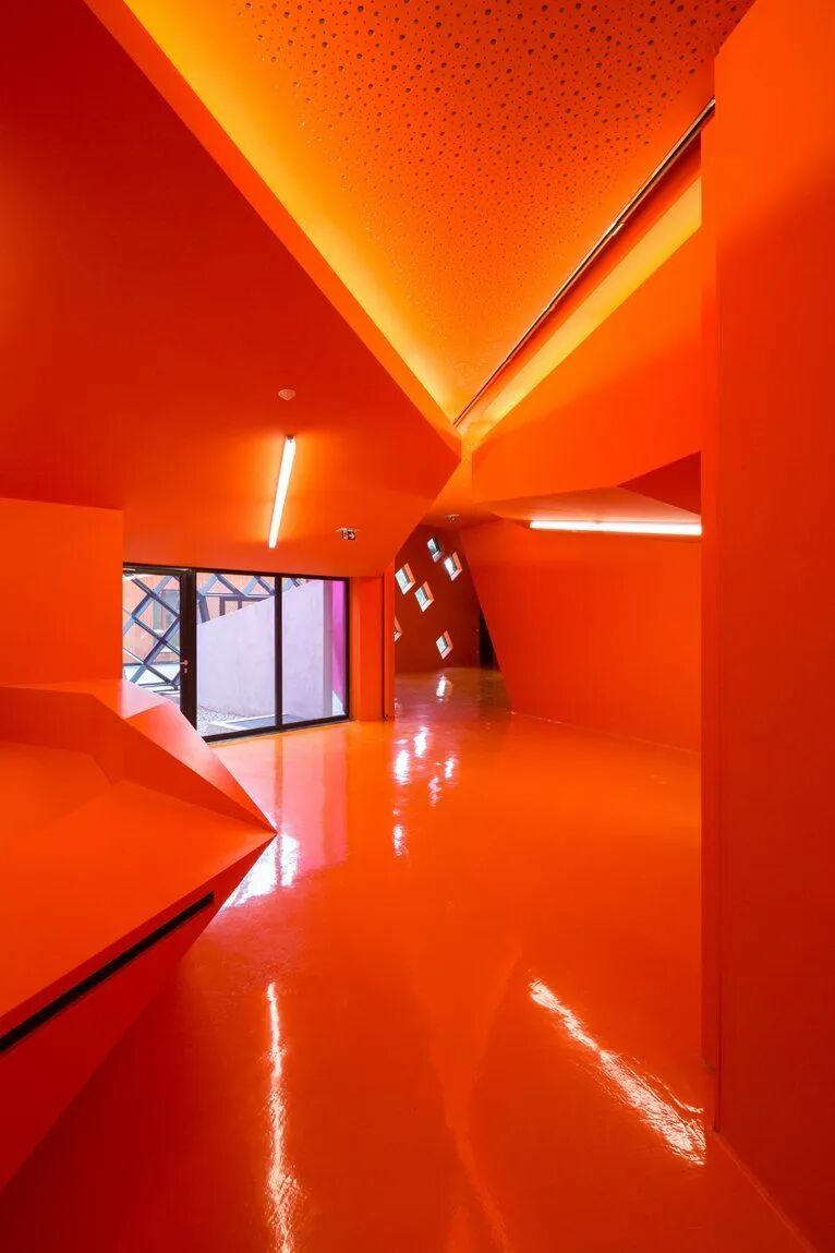 橙色的环境空间绚丽活泼,冲击感强。在公共空间,无论户外还是室内,橙色都给人积极的情绪感受,橙色的基调给人温暖华丽之感。