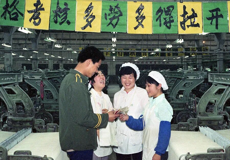 上棉厂还有一群坚强而美丽的纺织女工,她们“眼疾、手快、脚头勤”,在机器运转的声响和节奏中,不分昼夜年复一年完成规定的操作。“一三五政治学习,二四六操作练兵”是那个时代特有的口号,每日工作之余进行学习与操作练兵也是常态。纺织女工操作技能提升的背后,同时离不开保全保养工的悉心守护,他们是上棉厂的“蓝领”,用精湛的技术时刻养护着一台台纺织设备,确保它们正常运行。厂内的义务服务小队,把有一技之长的职工组织在一起,开展了形式多样的义务活动,拍照、理发、缝纫、植树和维修等服务,成为了上棉厂一道道靓丽的风景线。