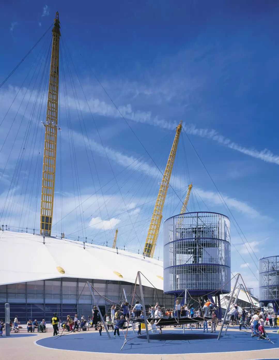 “千年穹顶”是大型综合性的展览建筑,是英国政府为迎接21世纪而兴建的标志性建筑。其中包括一系列展示与演出的场地,以及购物商场、餐厅、酒吧等。