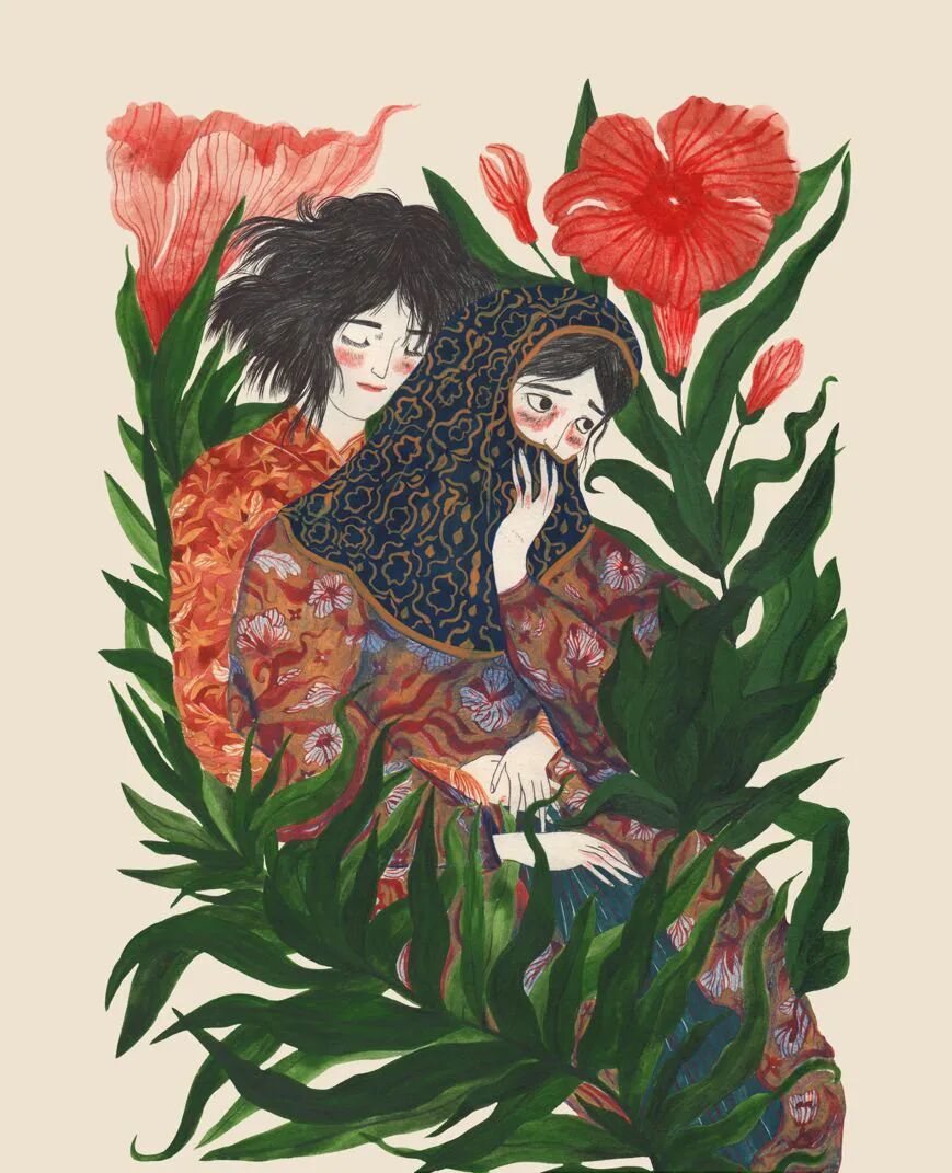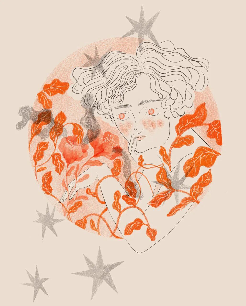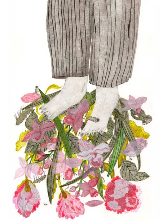 Daniela Spoto在笔触描绘的选材上,丙烯、水彩以及数字软件等混合媒介的运用让画面更加的充满生机。