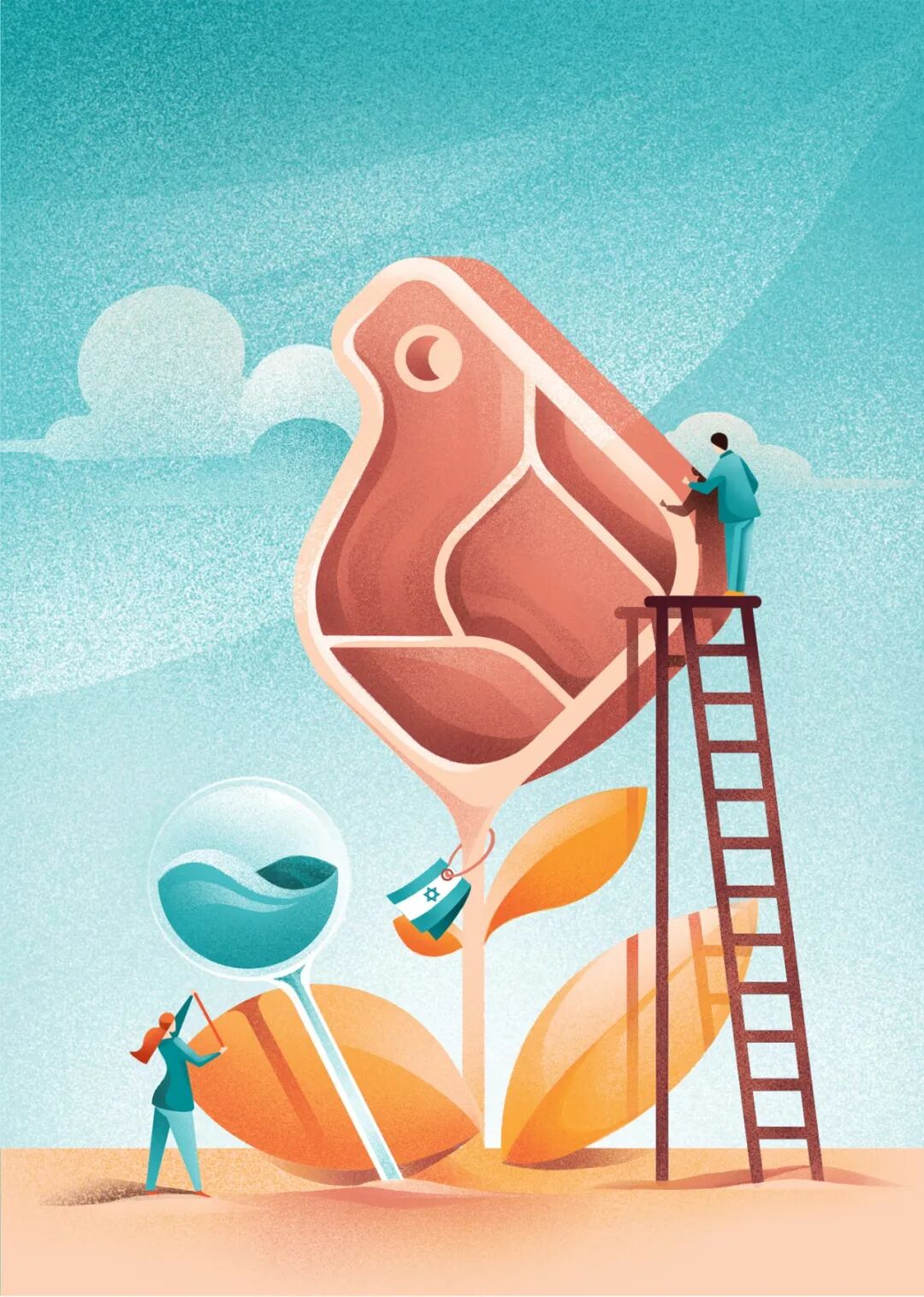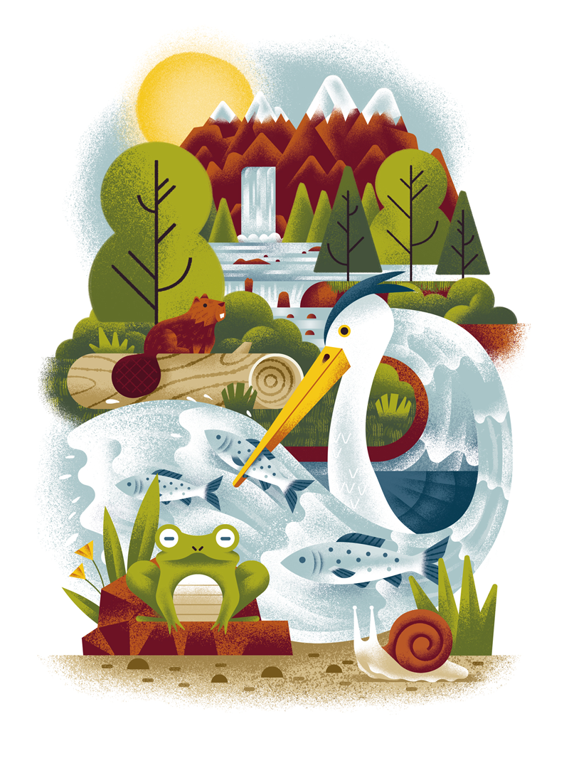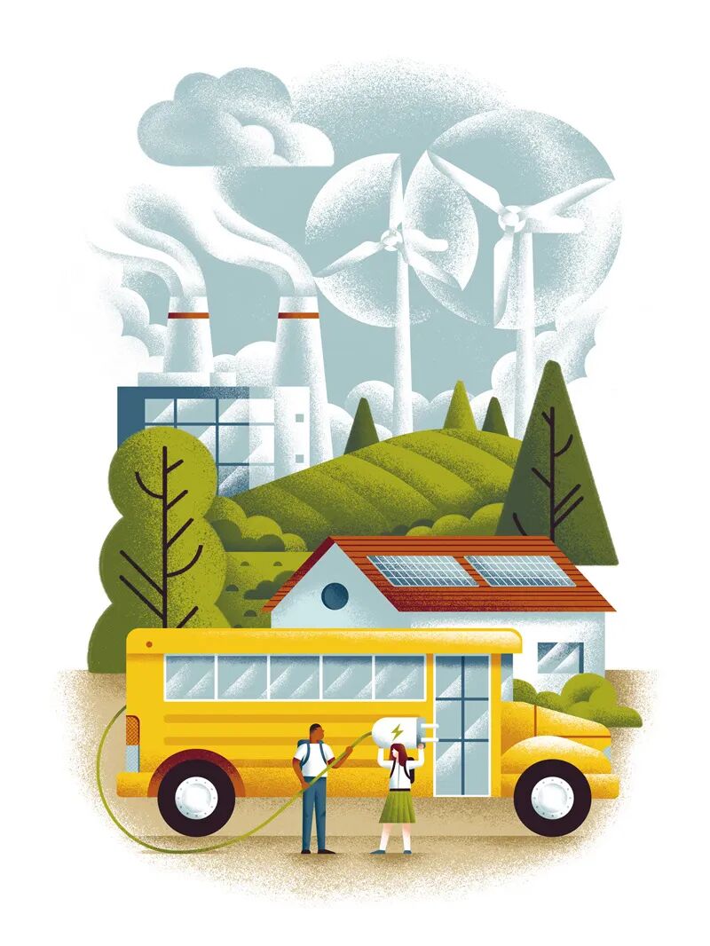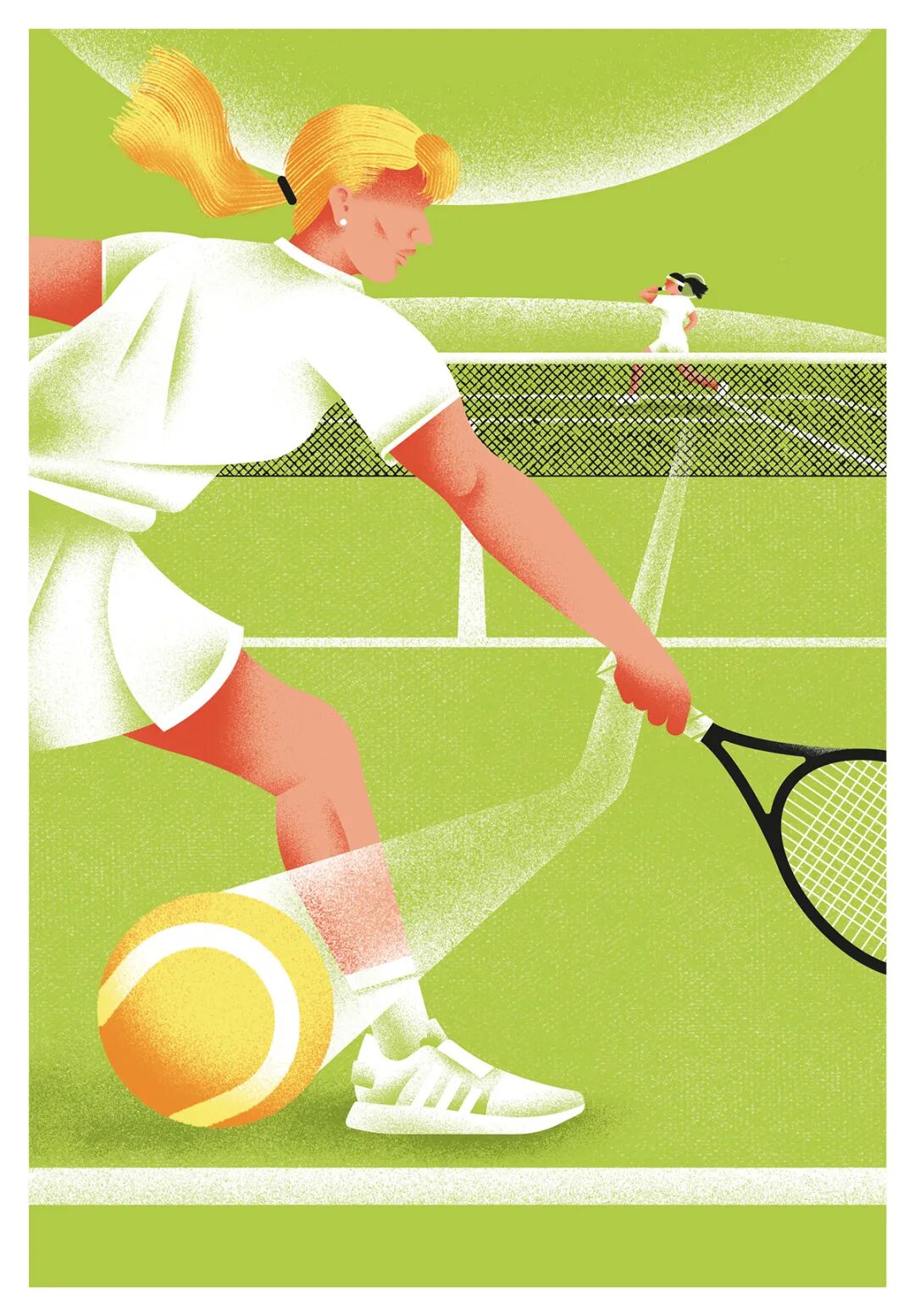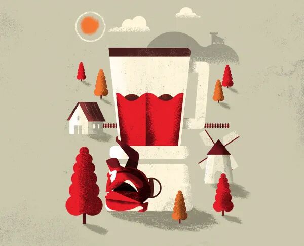 Daniele Simonelli在扁平的画面中加上肌理噪点,让插画变得更有质感。通常运用大量渐变,营造出色彩鲜明、对比强烈的光感,自然的笔触以及随性的色彩半点给画面增加细节。