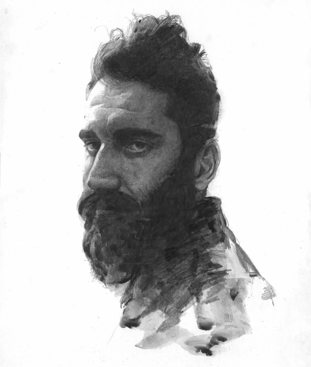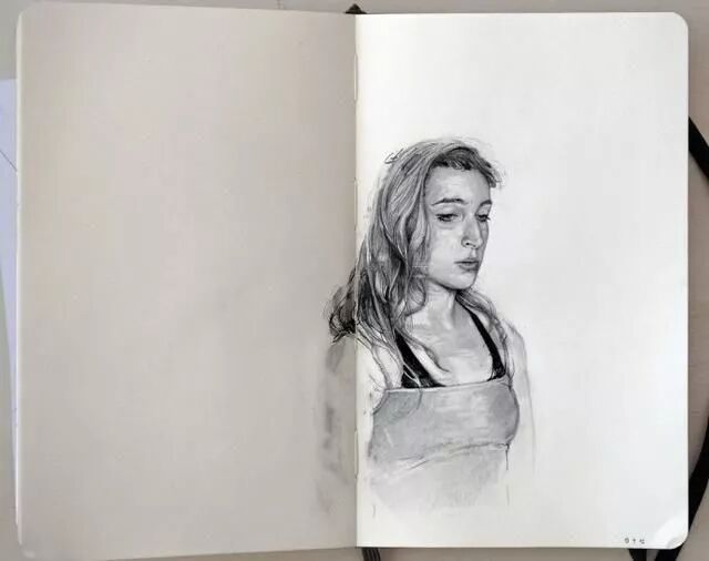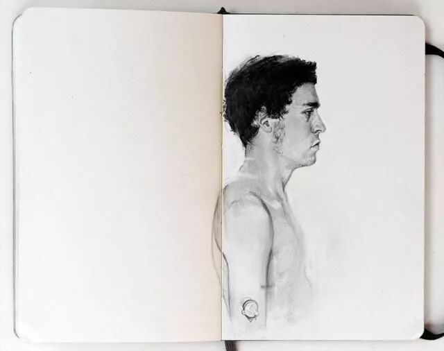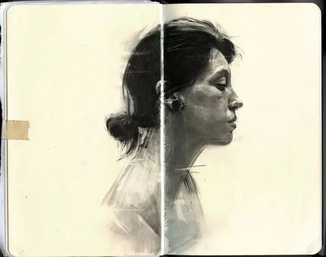 扎实的素描人物手绘,有色纸张做底纹省心