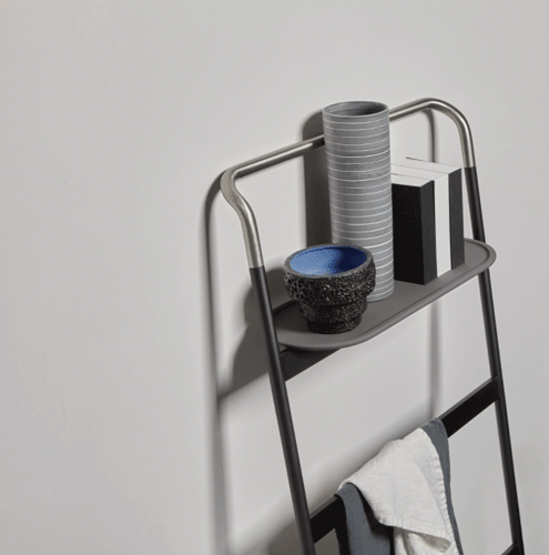 新梯子由涂有白色或黑色以及 antoniolupi 颜色范围的黄铜制成。同时可以配备搁板和托盘。