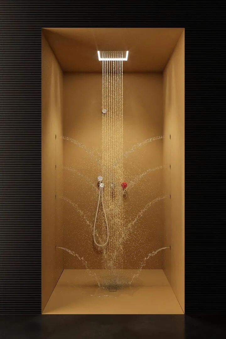 花洒是由管状线条组成的,颠覆了现有花洒的形式,顶部的灯被概括成一个圆形的球体。这一切让淋浴体验变得更为舒适。