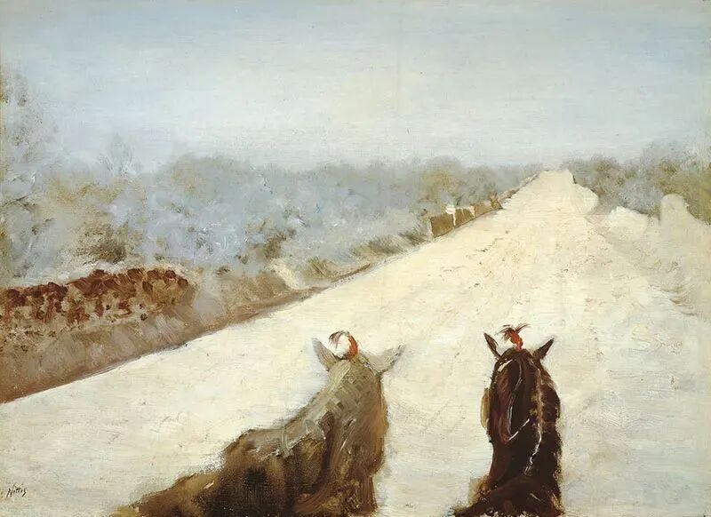 1872年,德·尼蒂斯(De Nittis)返回巴黎,不再与古皮尔(Goupil)签约,以他的画作《佛雷多》(Che freddo)在沙龙取得了成功!(冻结!)1874年(私人收藏)。同年,他受邀参加在纳达尔(Nadar's)举行的第一届印象派展览。邀请来自埃德加· 德加斯(Edgar Degas),他是居住在巴黎的几位意大利艺术家的朋友,其中包括Telemaco Signorini,Giovanni Boldini和Federico Zandomeneghi。De Nittis没有被所有印象派接受,也没有参加随后的展览。