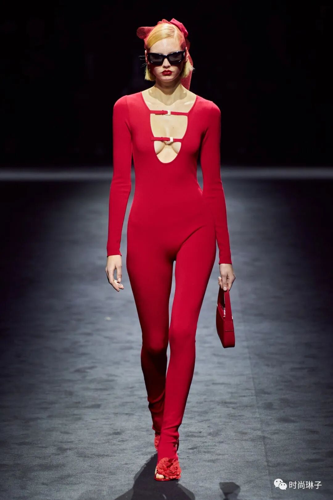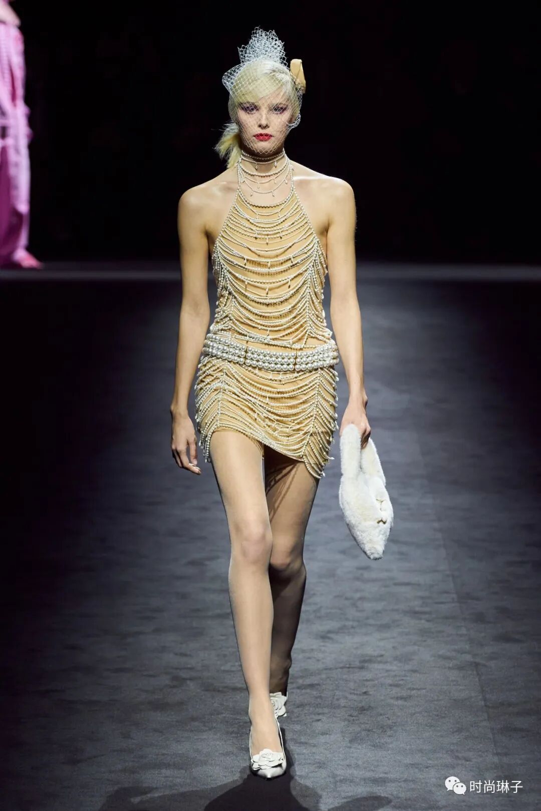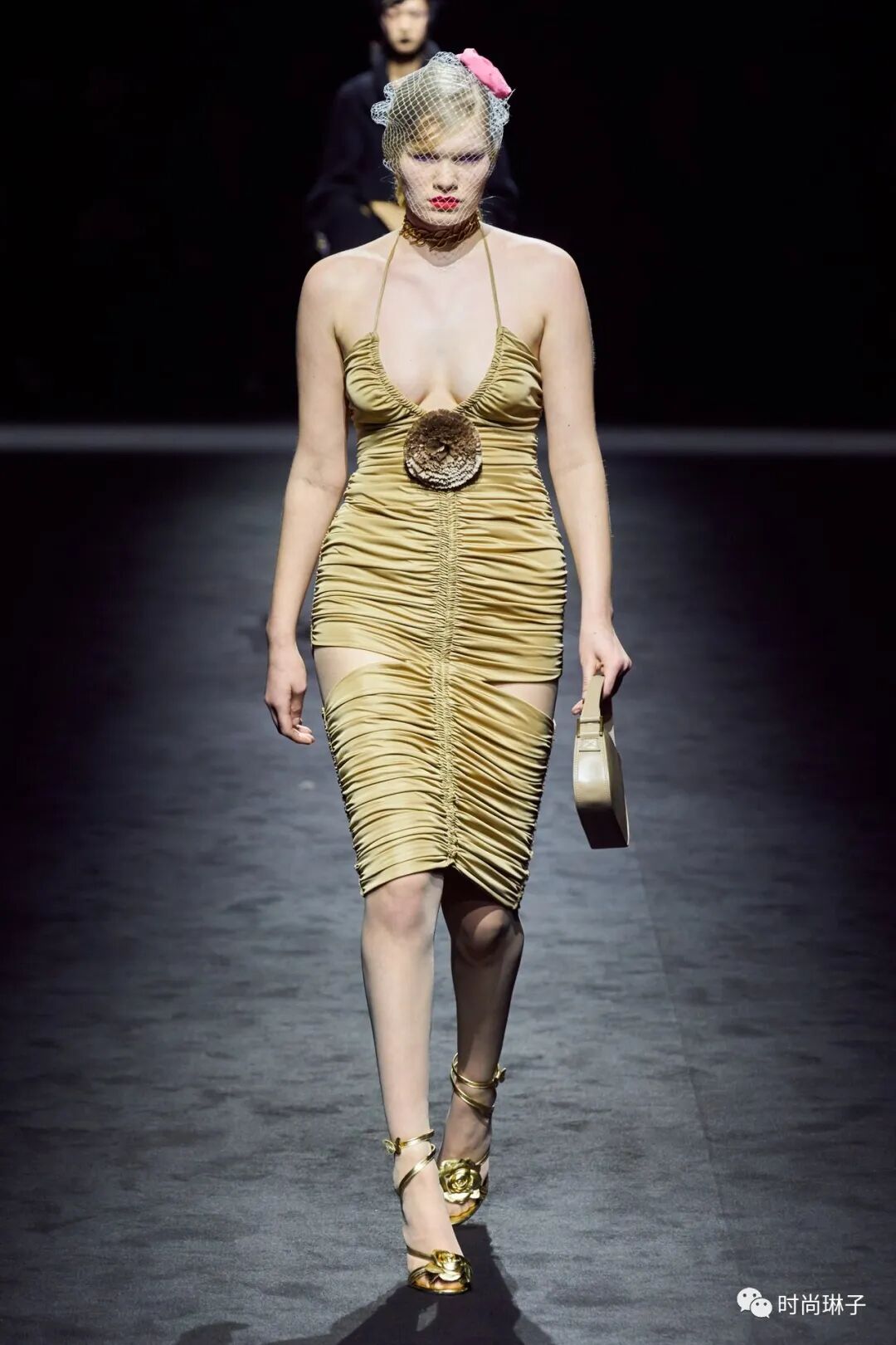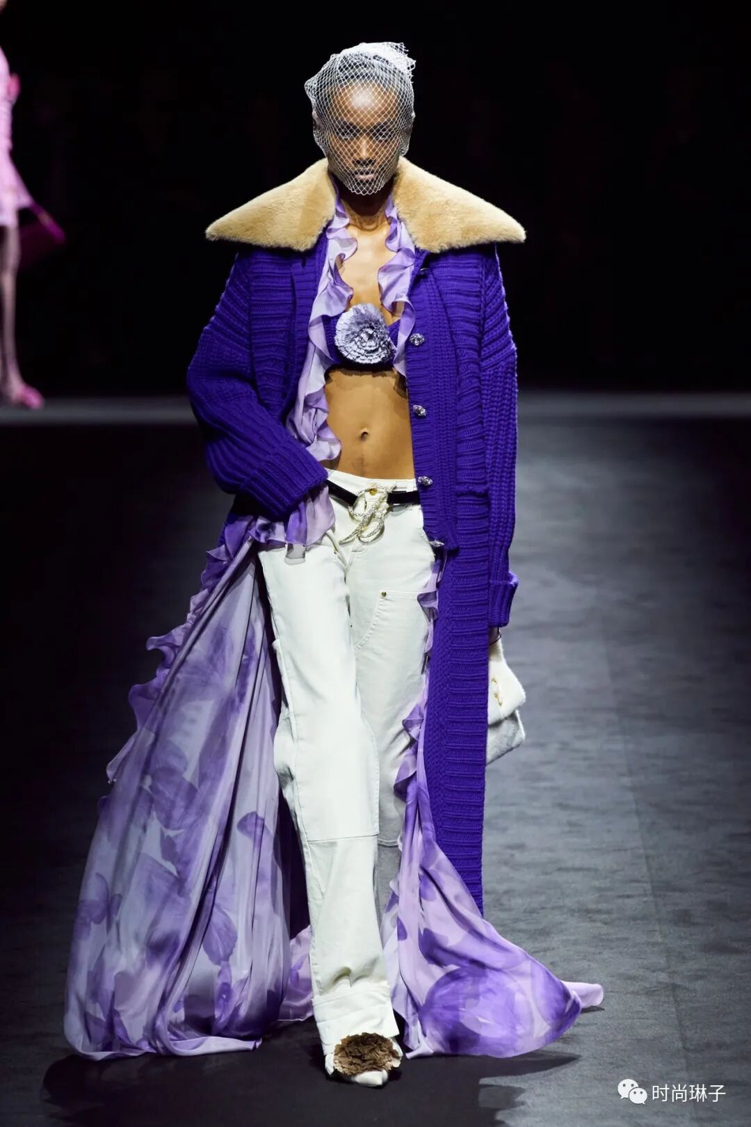 该季还从Blumarine品牌档案库中寻找灵感,1995年由知名摄影师Helmut Newton拍摄,维密超模伊娃Eva Herzigova出镜的广告大片,至今也令人难忘。