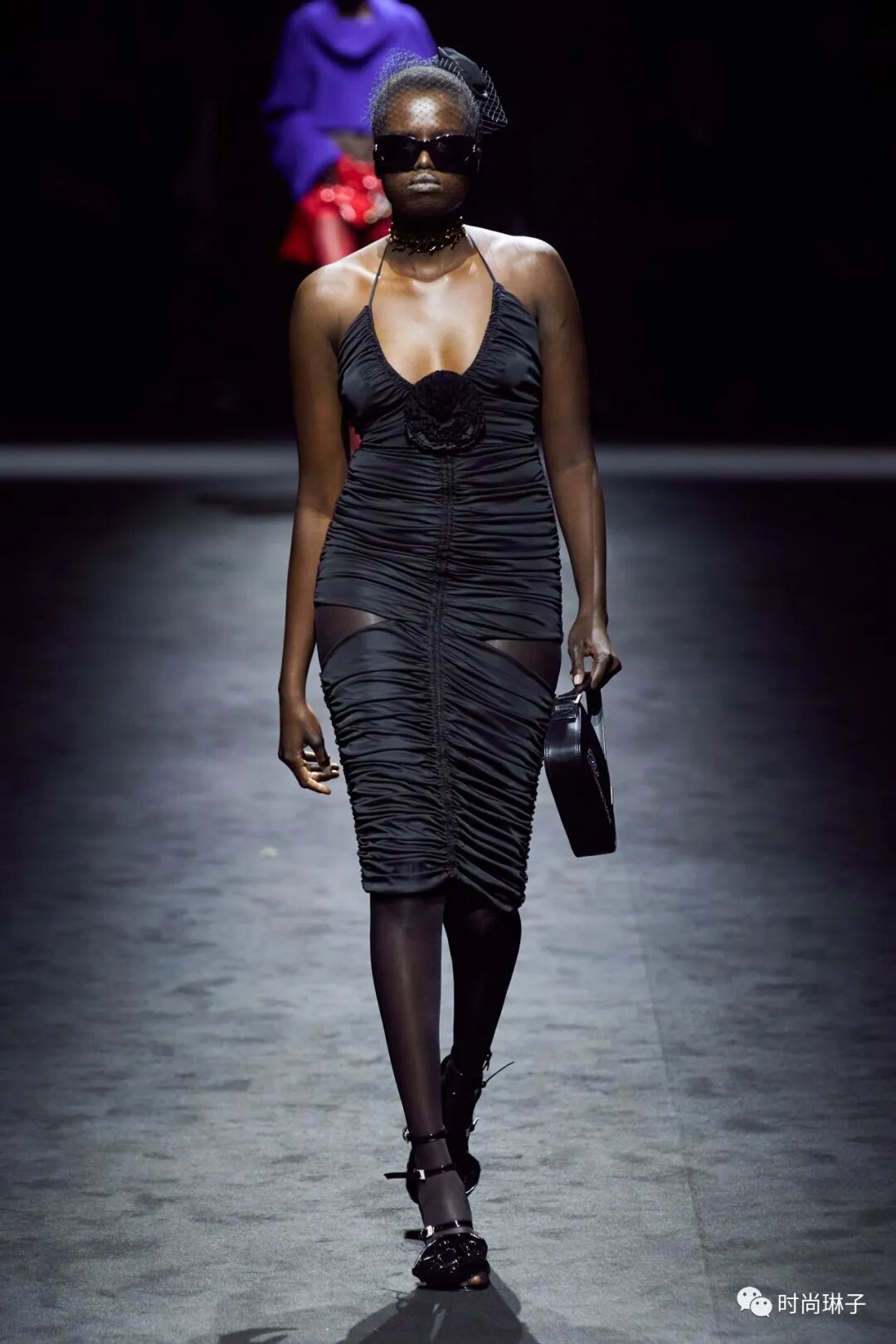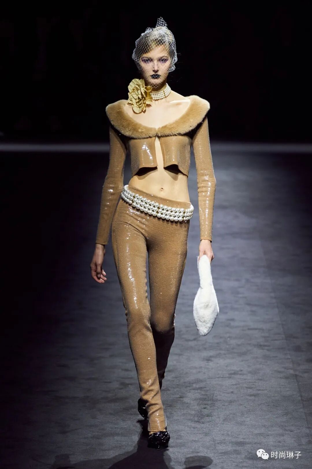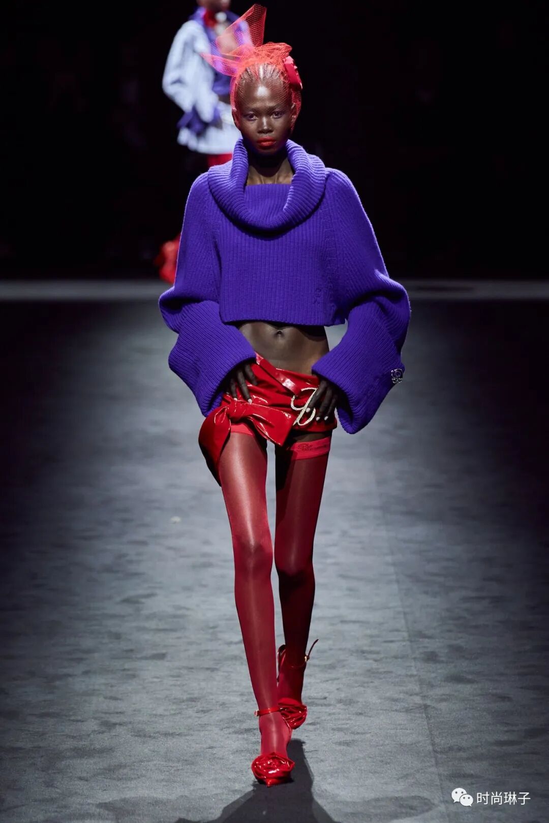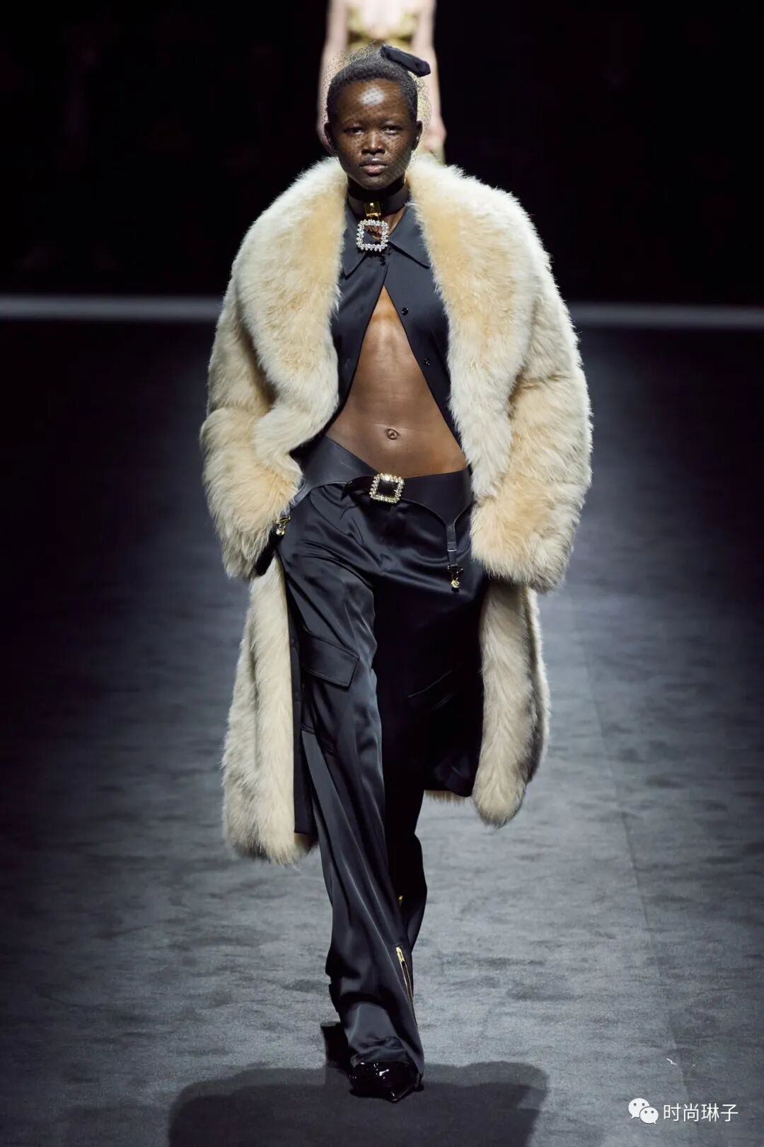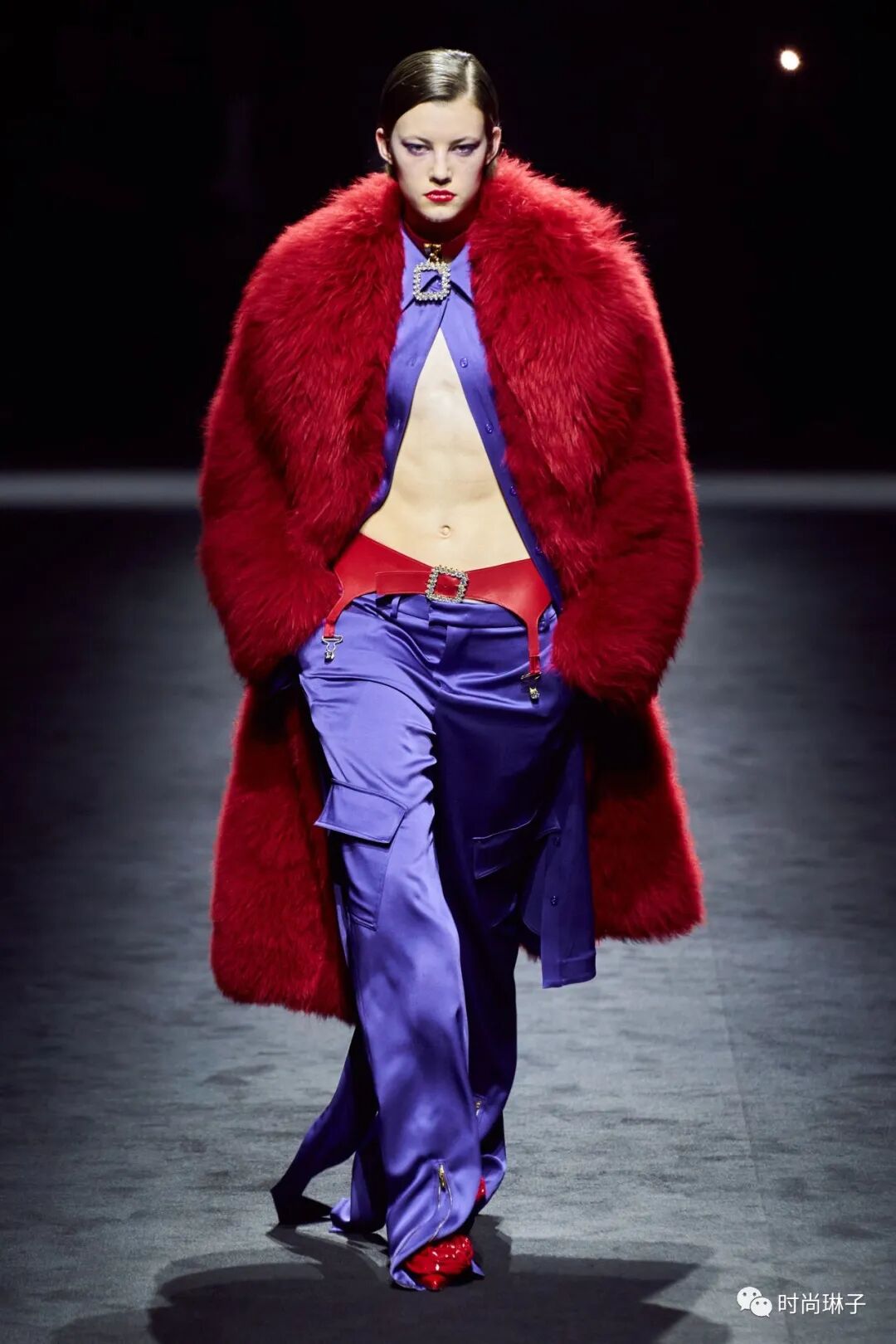 该季还从Blumarine品牌档案库中寻找灵感,1995年由知名摄影师Helmut Newton拍摄,维密超模伊娃Eva Herzigova出镜的广告大片,至今也令人难忘。