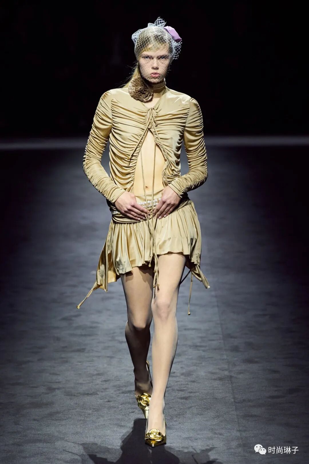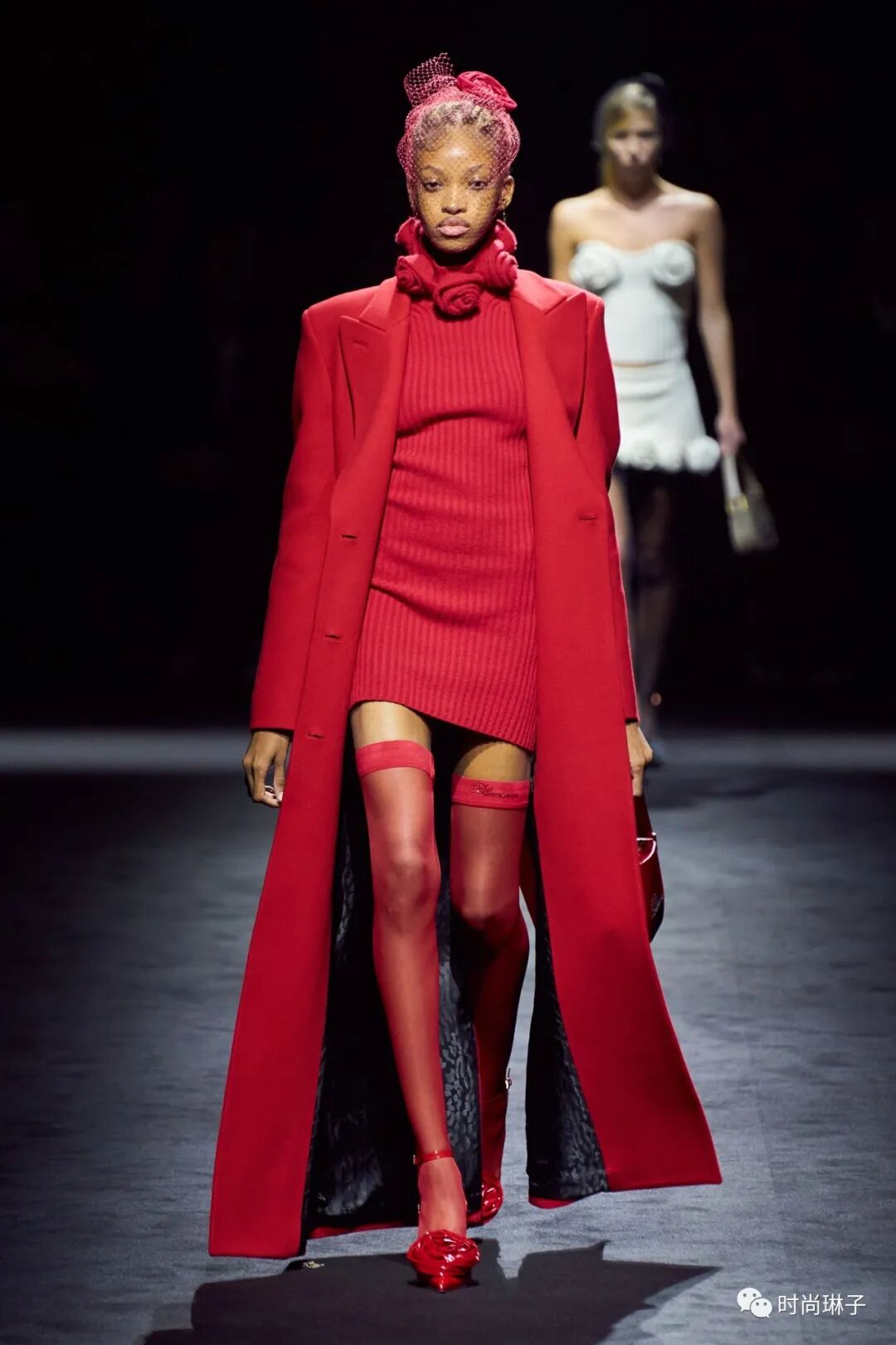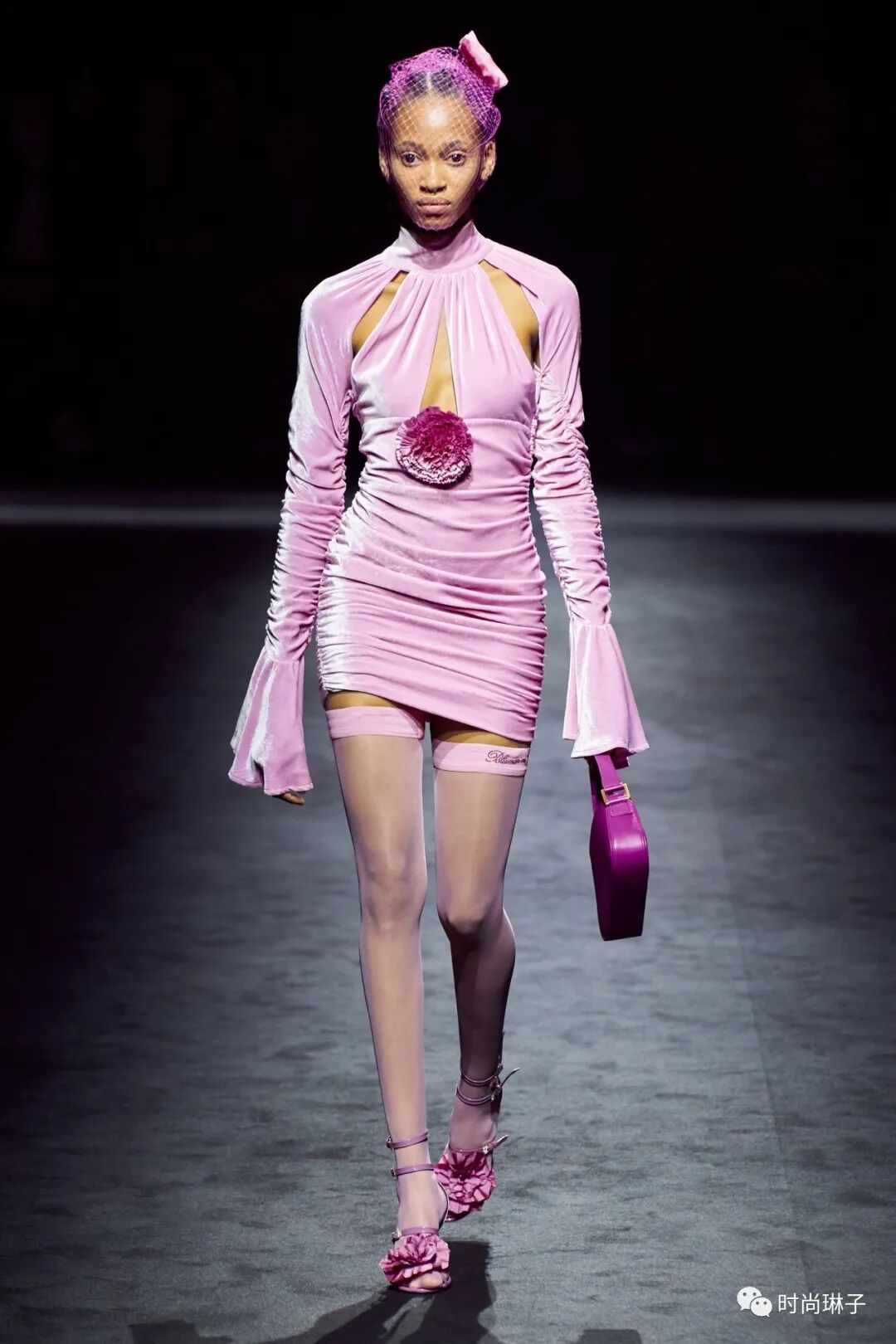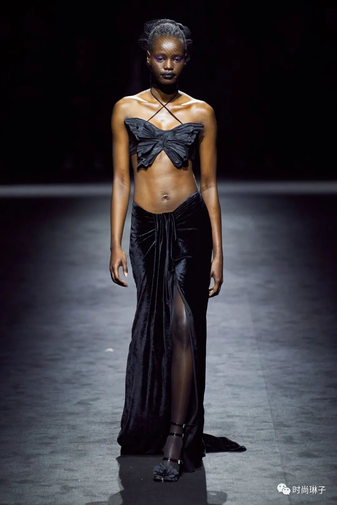 Nicola Brognano上任后,蝴蝶也成为了品牌的新标识。Blumarine 2022秋冬系列中浪漫的蝴蝶胸衣搭配高衩长裙,继承了品牌女性化、浪漫主义的传统。
