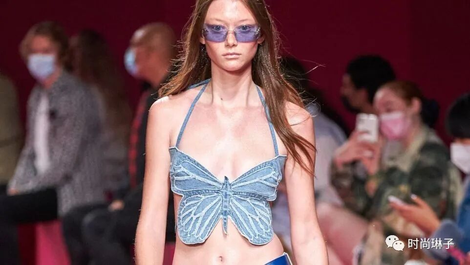 该季性感蝴蝶造型的吊带上衣会让人联想起2000年Mariah Carey穿着一件蝴蝶上衣搭配低腰牛仔裤的造型。