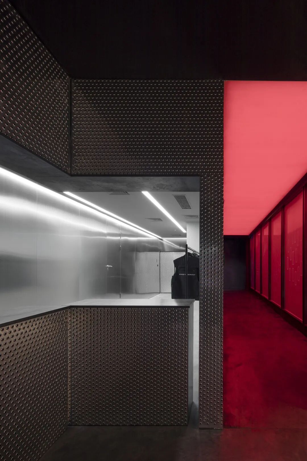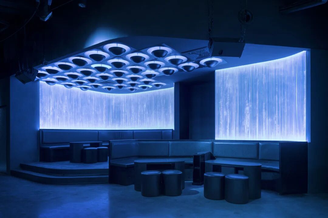 空间设计从黄金时期的俱乐部中汲取各种元素,并将其按照未来的审美混合在一起。Q&A的设计始于纯粹的空间营造,以流动而无拘无束的音乐体验为基础,旨在用材料和灯光为来俱乐部的人们提供一种沉浸式的体验。整个项目被分成了两个空间:光屋和暗屋。