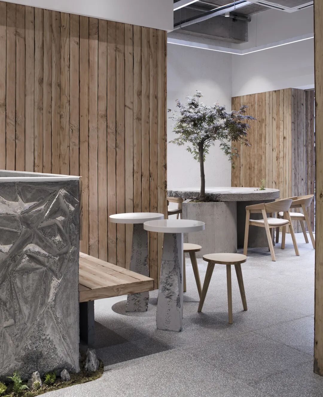 隐藏在上海嘉里中心繁忙的地下商场里,Ethai Café对传统泰国菜做了一种全新诠释,专注于用健康食材制作简单清淡的菜肴。朴素的色彩和材料调色板的渐变是基于泰国中部的考古遗址和土地的回想。同样地,Ethai Café似乎是由包裹着外墙的夯土雕刻而成的。