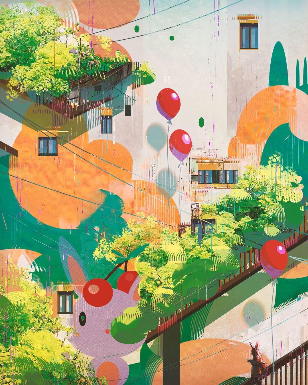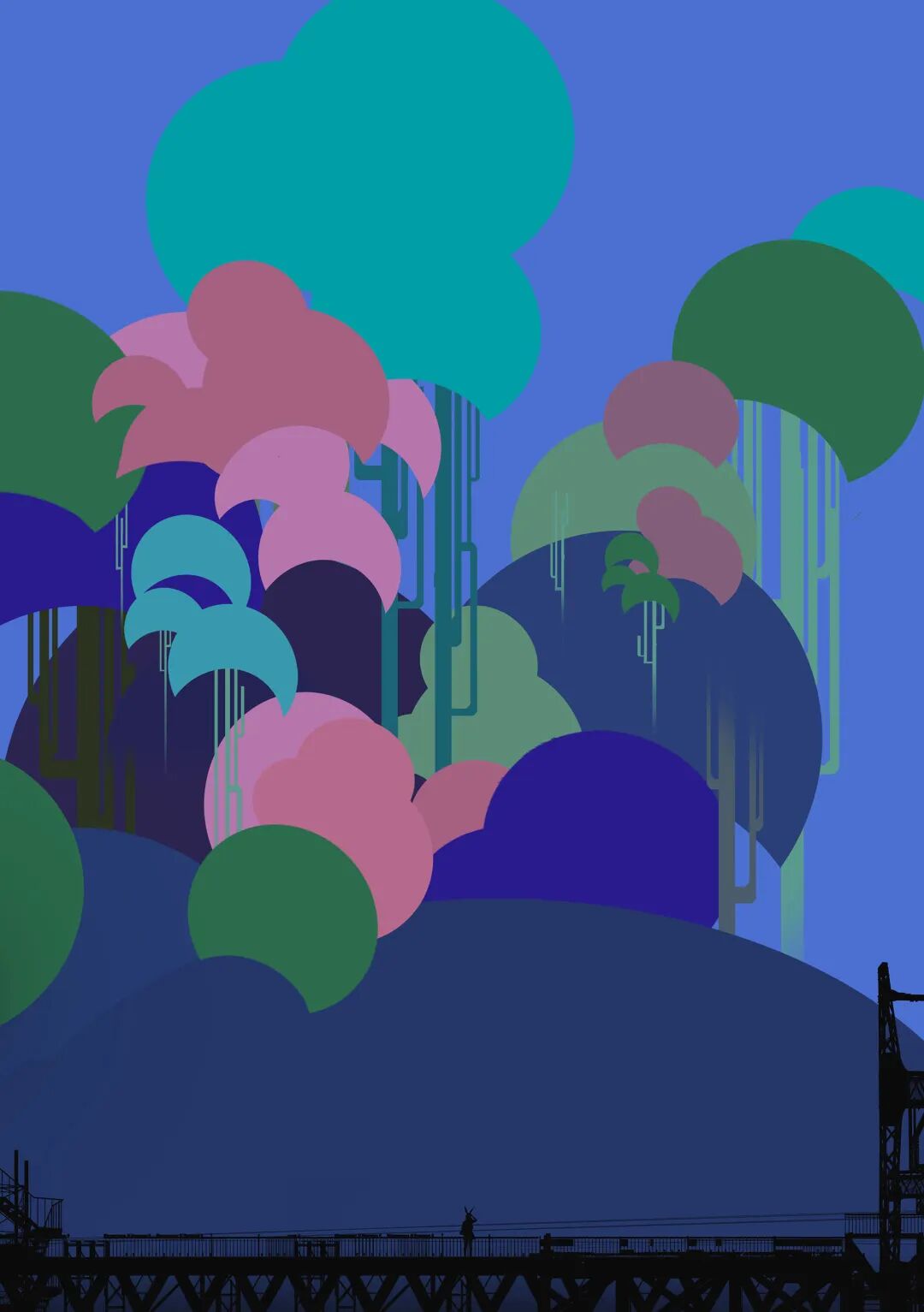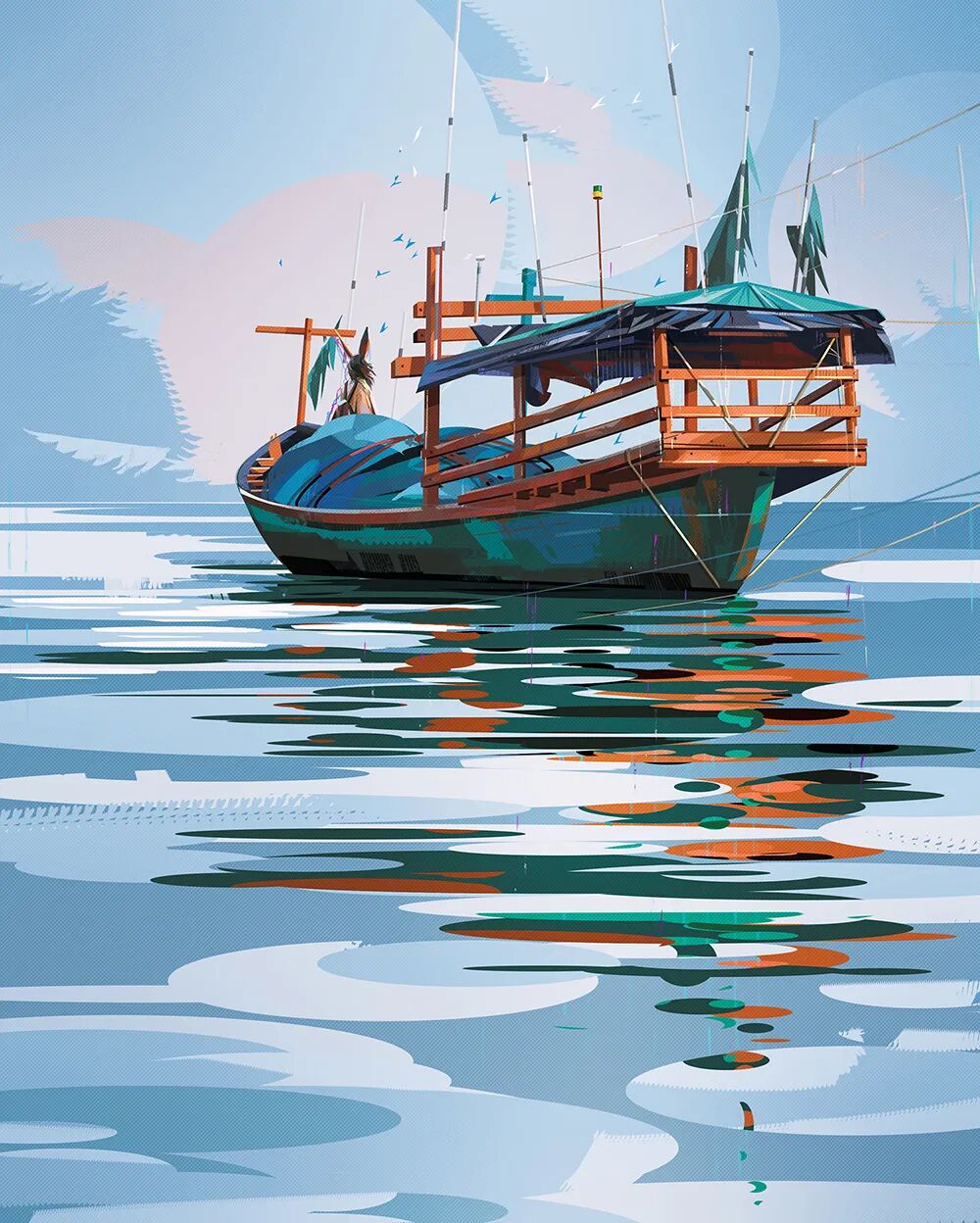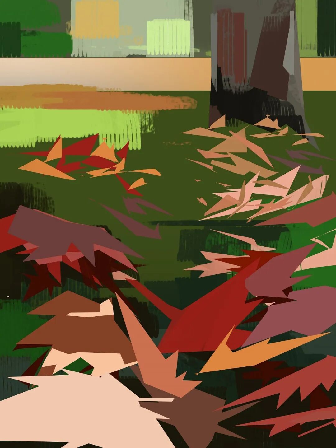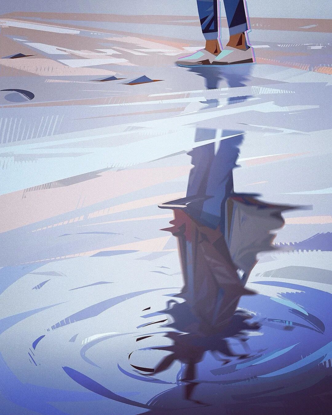 除了油画写实厚涂,扁平化风格的草图和成稿放在一起同样能够给人带来很大视觉冲。