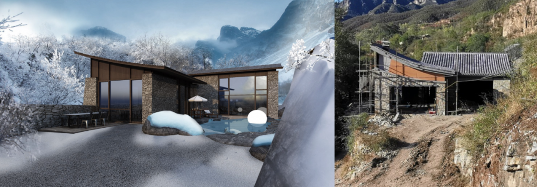 这个项目是北京延庆的农家院,是由6个老村改造的,都是用自然的概念,特别朴素地回到乡村的状态。用的材料全都是当地河滩上的石头,请当地的农民工来做的施工,屋顶做了一点弧度,没有做太多的改变。
