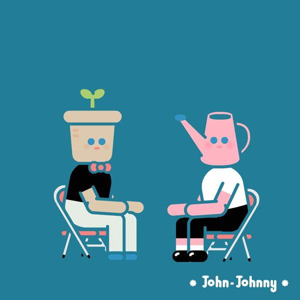 约翰强尼为这幅GIF作解释:“花盆喜欢水壶,但他自己又没有能力给予水壶什么,而水壶通过花盆得到了自己想要的花,并没有在乎花盆的存在”。读者看完,会发起思考,开发脑洞,认为这是互相给予与付出的治愈系故事。
