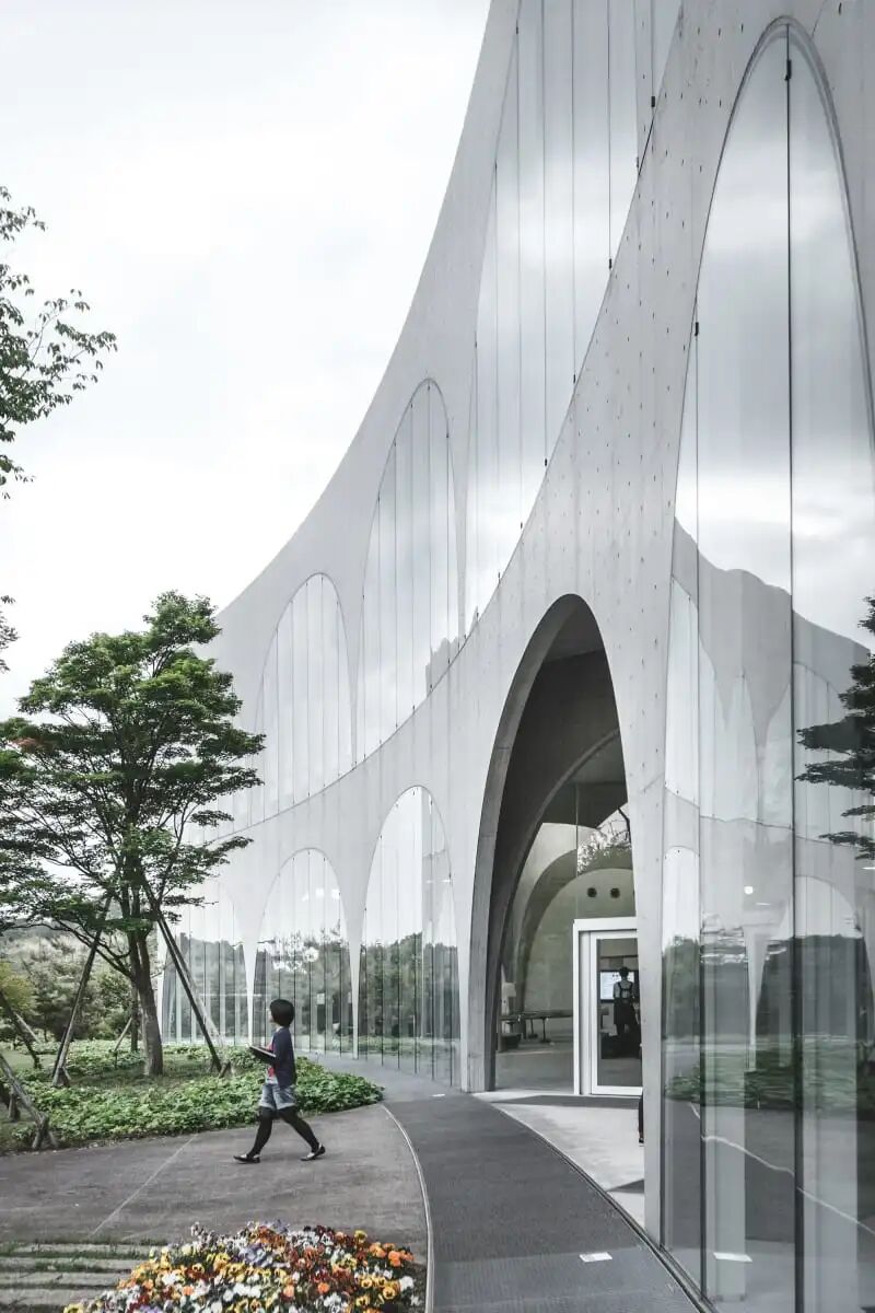 该项目以其轻巧的几何形状而著称,随机排布的拱形结构使室内倾斜的地面和外面的公园风景保持连续,营造出了通透延绵的感觉,人们的行动流线和视觉流线都能自由地贯穿建筑。