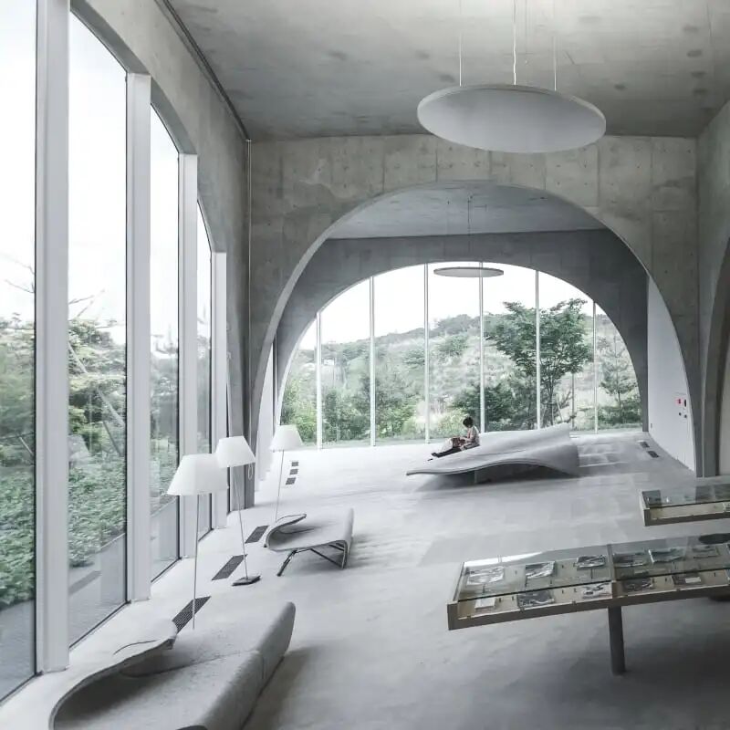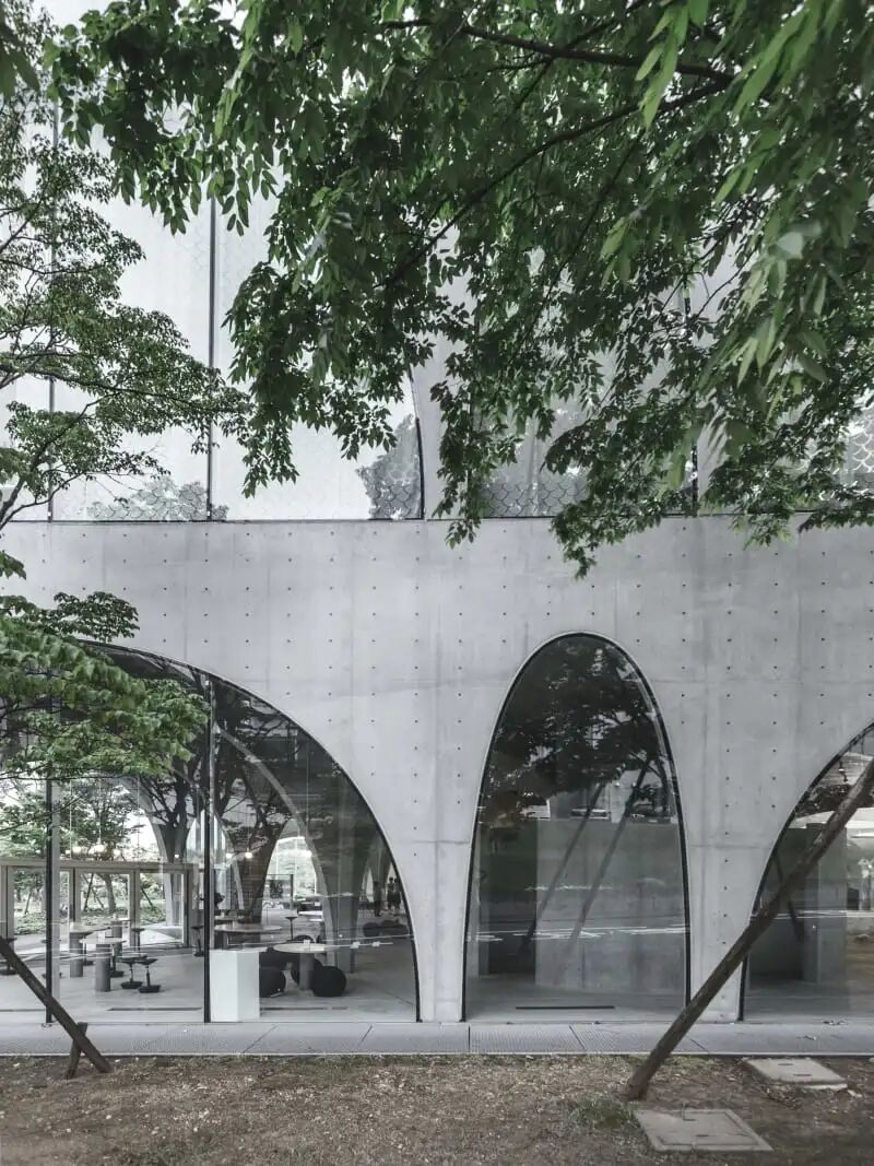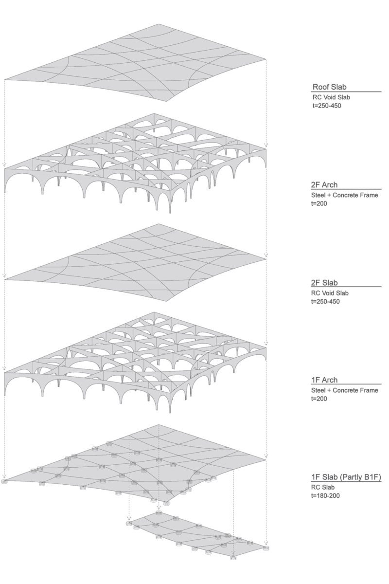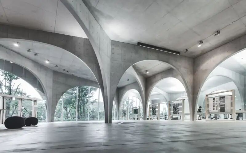 拱形相互交汇使整体建筑轻盈剔透,犹如一件镂空的艺术品,交汇处底部非常纤细,而顶部却能承受住二层的重量,这些拱形的跨度从1.8米到16米不等,但厚度始终保持在200毫米。