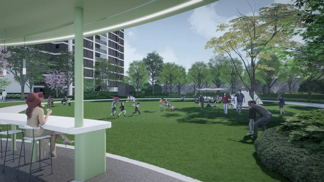 开敞的草坪空间与混龄光环相辅相成,打造了可露营草坪,同时小小足球场也能被包容在场地中,多功能的场景体验在此发生。