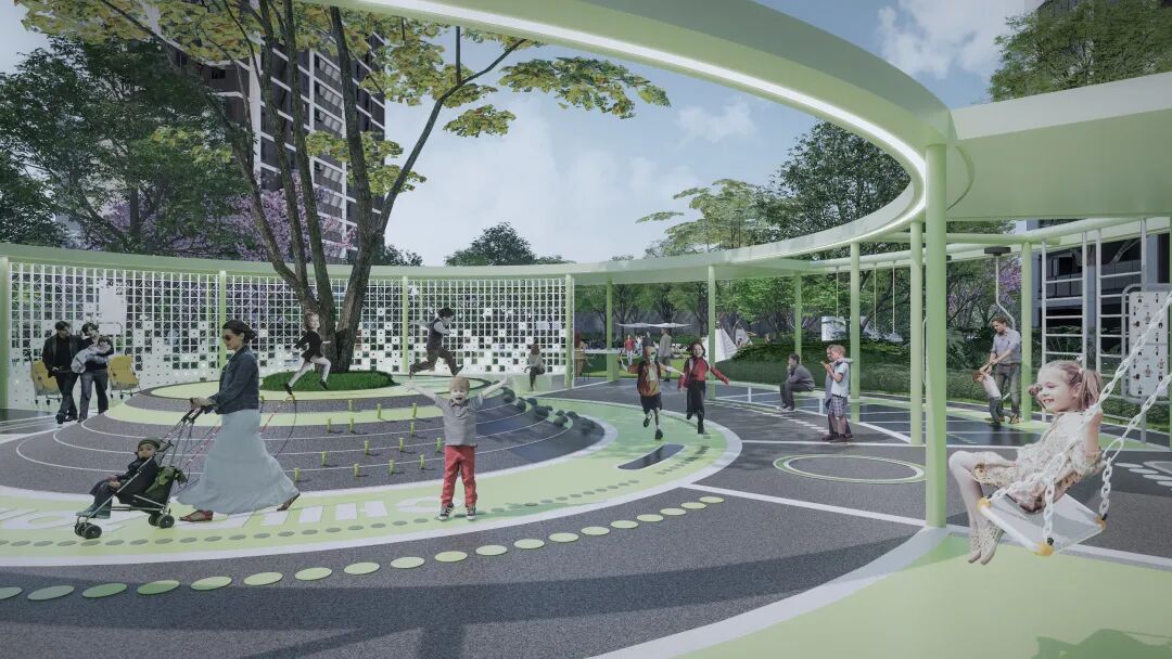 不同学龄段的小孩、到青年、中老年都能找到属于自己的户外活动场地,针对不同学龄段小孩的体育课程进行场地功能设计,在快乐游戏中实现体育满分。
