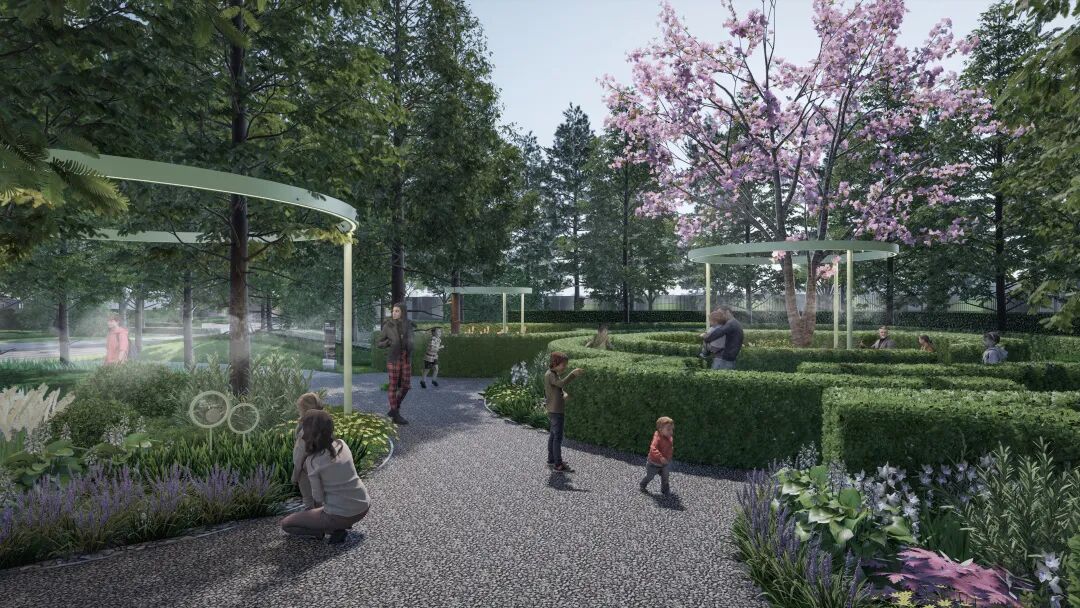 自然探索、自然共融是场地的核心理念。场地利用植物园与植物迷宫组合的形式展开社区与自然的对话,同时通过植物的识别和体验,丰富场景的感知功能,提供科普的性质,形成大人小孩均乐在其中的植物探索乐园。