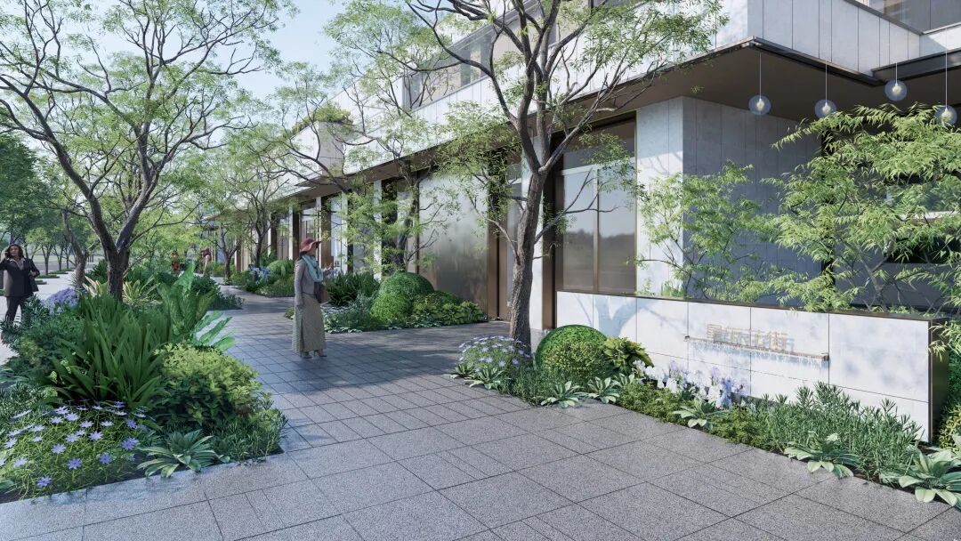 场地的本体是多场景互动,多功能复合的花园街区,其中包括转角广场、邻里花园、花园商街三个主场景。场地强调了室内外的空间互动、展现了不同表情的花园植物情景。