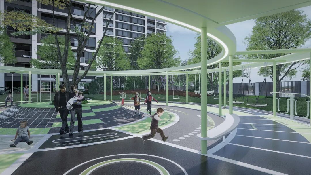 与混龄光环联动,互补功能空间,户外停留与活动的便捷与贴心。