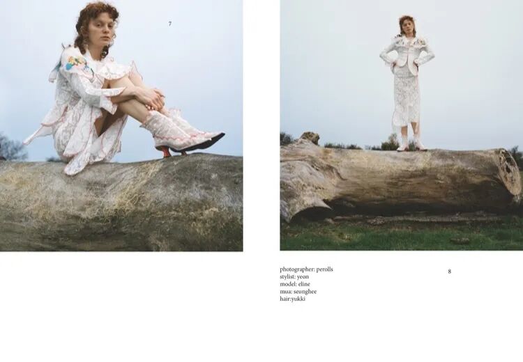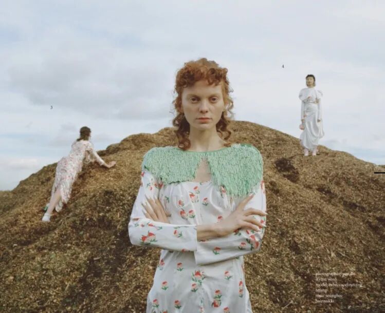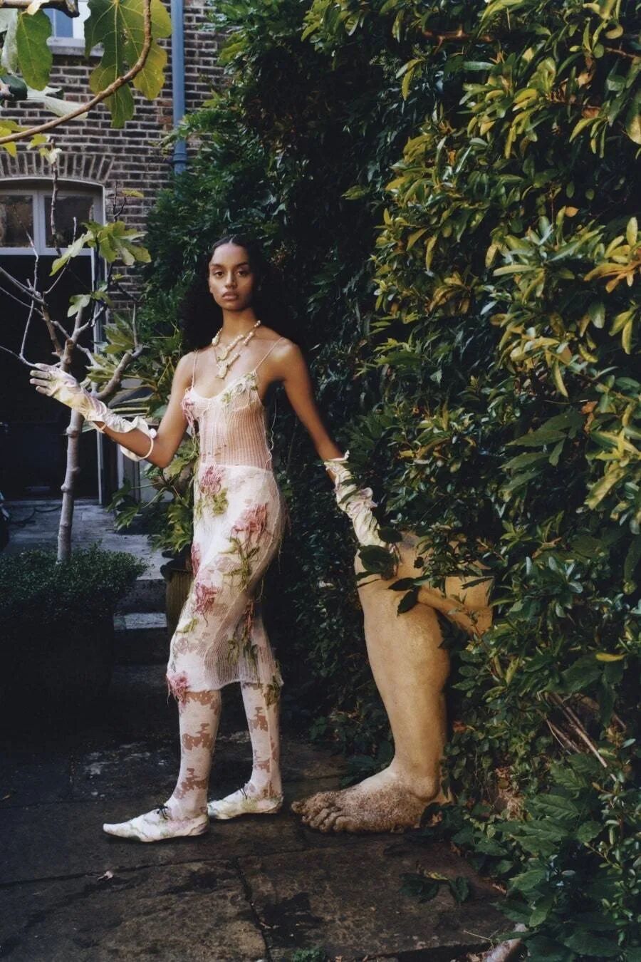 丝质碎花面料在Yuhan Wang的手中仿佛重生,带有层级感的结构设计以及标志性的元素融入,让东西方美的理解在其设计中找到了交汇点。Yuhan Wang总结自己设计的Keywords ——美,怪异、温柔、细腻、感性。