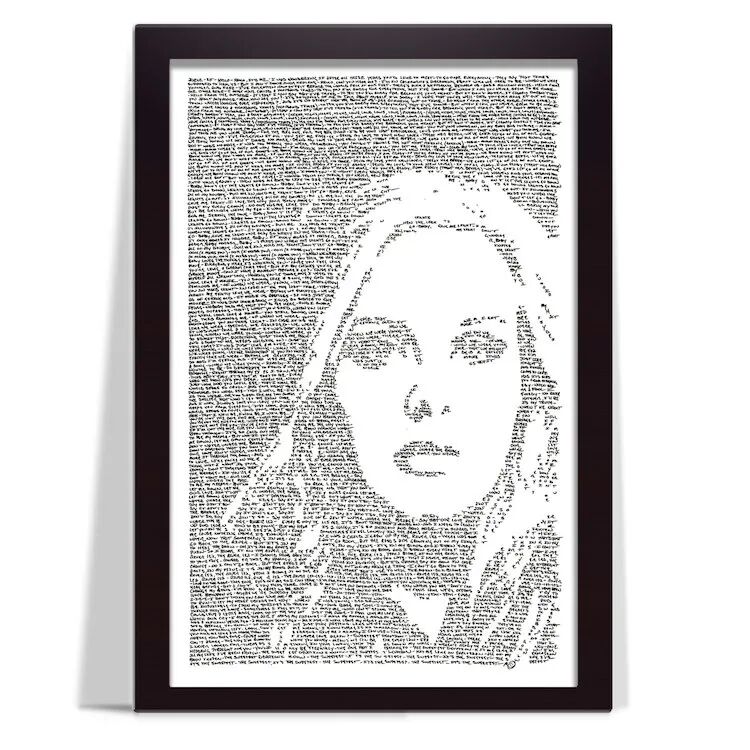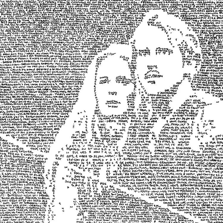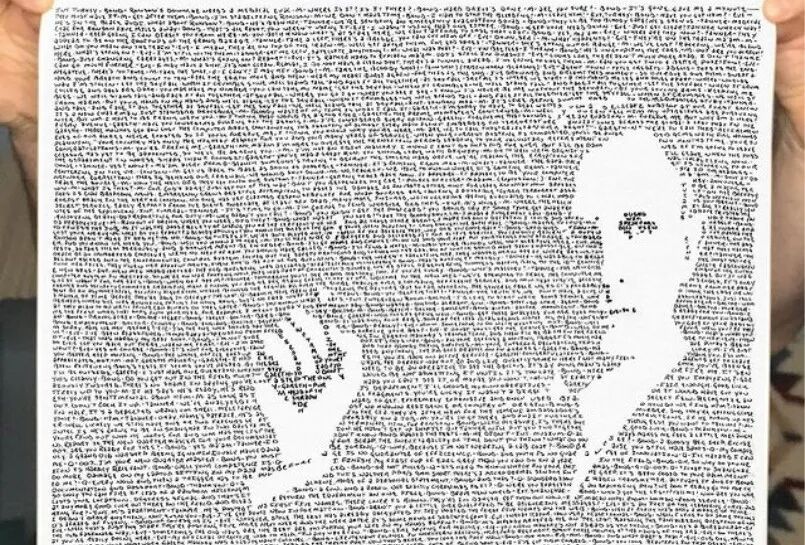 这些由英文字母构成的画作,看起来类似于点彩画,远距离看上去,就像是一幅黑白版画,离近了去欣赏,就可以看到无数个字母分布在画面上。接下来,就让我们起来欣赏一下这种有趣的手写肖像画吧。