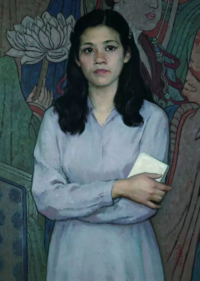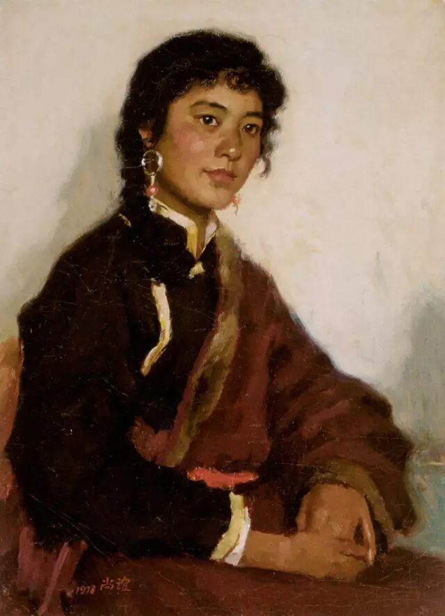 靳尚谊《阿沁肖像》85×85cm-1987-布面油画