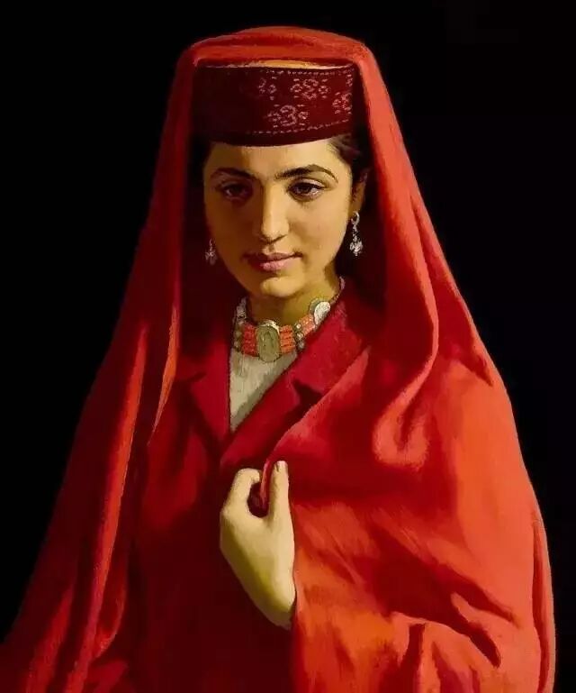靳尚谊《塔吉克姑娘》110×55cm 1994 布面油画