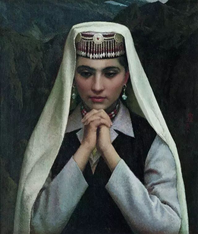 靳尚谊《塔吉克小姑娘》60×50cm 1990 布面油画