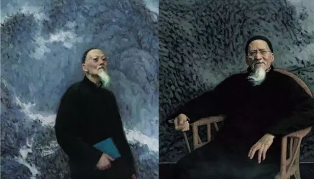 而靳尚谊作为画家个体风格的养成,则表现在尝试中国水墨和油画的结合,也可以说是中国绘画的写意精神与油画艺术的结合之中。为此,他画了两张黄宾虹,背景都是黄宾虹的水墨。