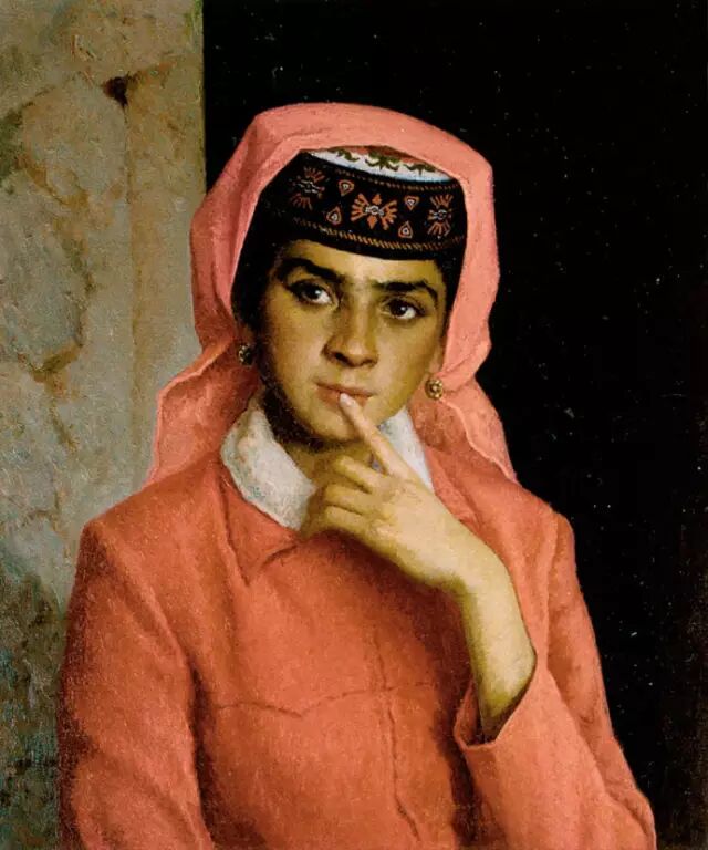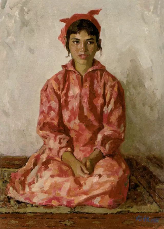 靳尚谊《穿花裙子的维族女孩》1981-纸板油画