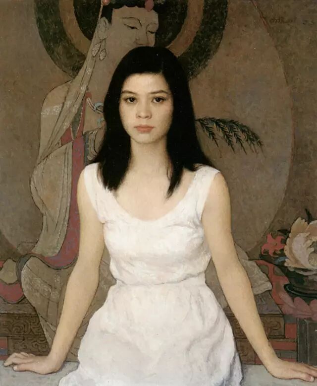 靳尚谊《穿白连衣裙的女孩》80×65cm-1993-布面油画