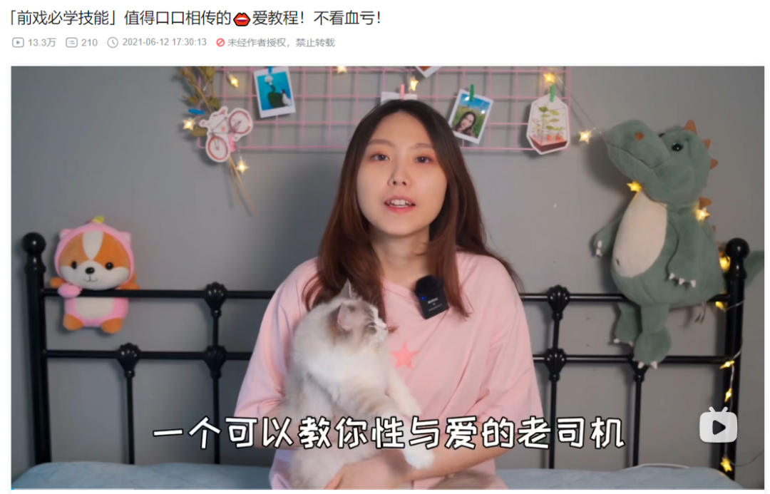 但是上市后,B站的审核变得非常严格。为了把内容发布出来,“A片”要换成“口片”,所有器官必须用拼音首字母代替,比如“阴道”要写成“YD”,“阴茎”要写成“YJ”。在一个讲解日本情趣酒店发展史的视频中,菲比改了22遍也没有发出来。
