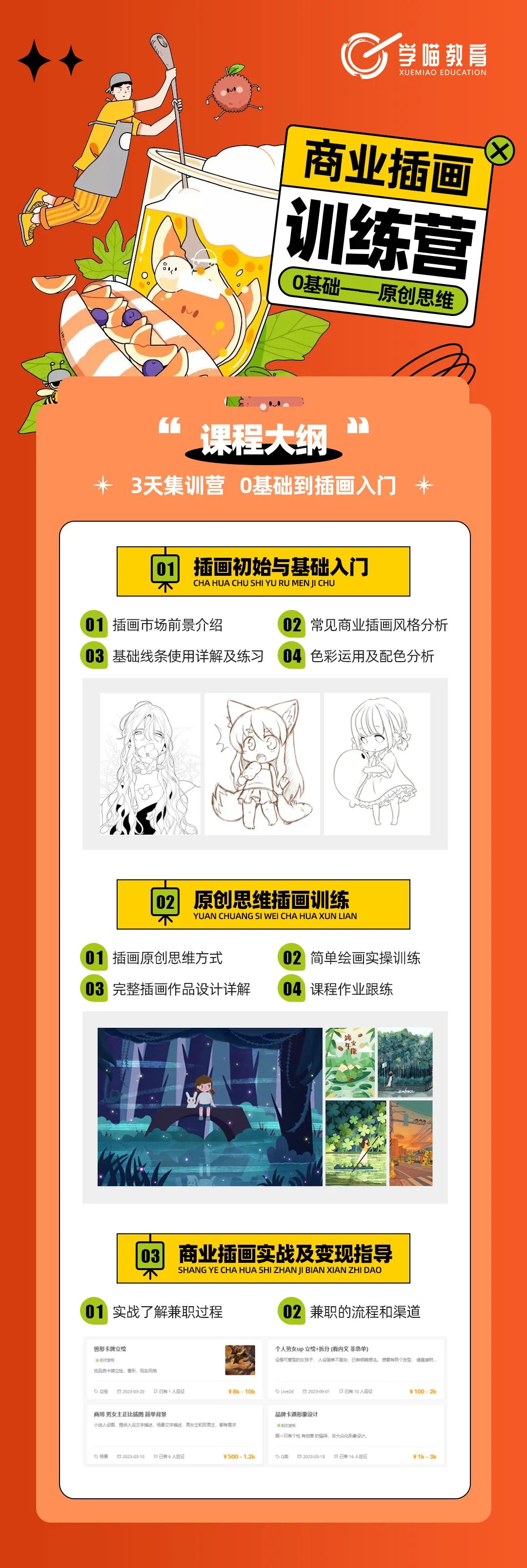 不过前面也提到,我也是通过上网课,一步一步跟着把技术和审美培养起来的,学习的过程并不慢,收获的快乐倒是很多。如果想和我一样学习插画技术,并通过平台运营手段实现技术变现的,我推荐直接来这堂《商业插画训练营》。这也是亲身体验的课程,最重要还是免费的。