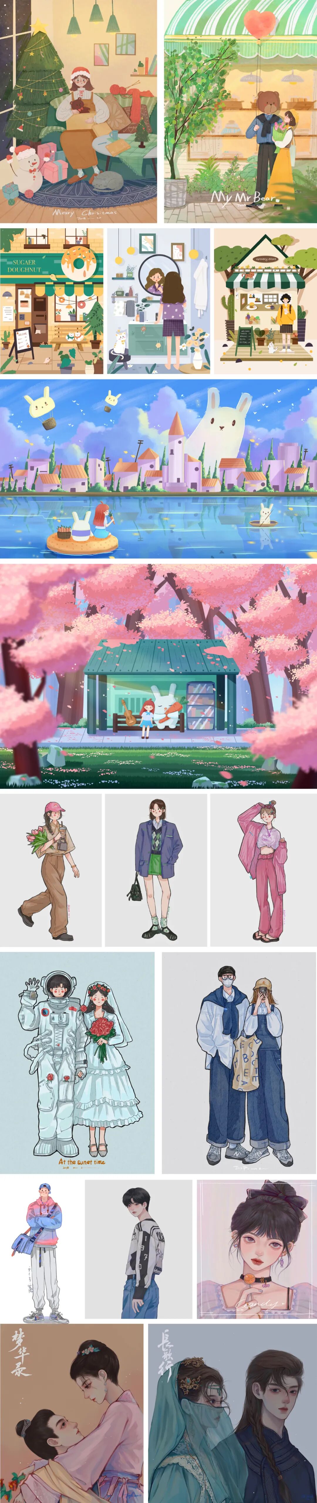 学员们无需担心能否可以学会,老师将带你从认识插画风格开始,经过三天的训练,初步学会画插画,以下就是三天训练营之后的学员作品。(包含临摹作品)