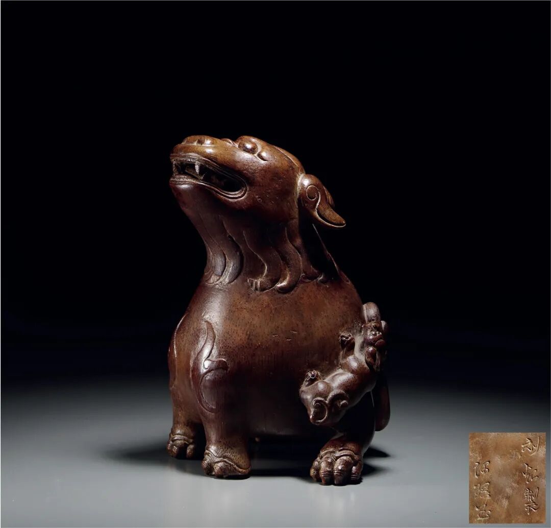 何瑗玉藏刘起制竹雕甪端摆件 清早期 高27cm 款识:刘起制,何瑗玉