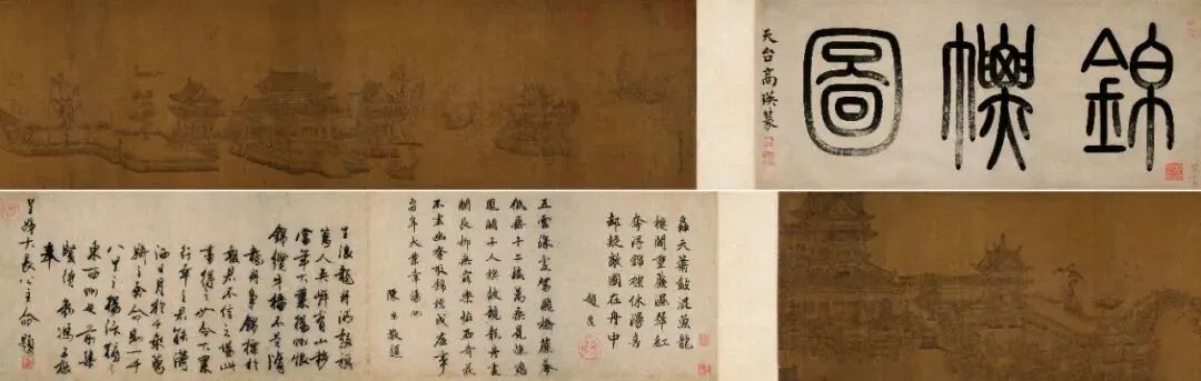 《锦标图》手卷 王振鹏 (元) 水墨绢本 引首:31.5×74 cm 画心:31.5×185 cm 题跋:31.5×118.5 cm