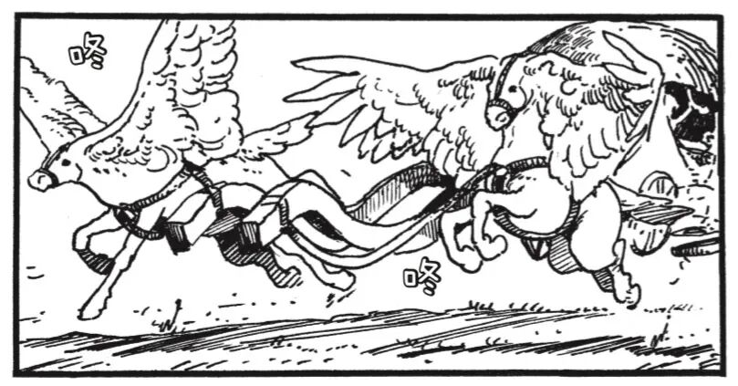 用于牵引城市里有钱人乘坐的“翅膀马车”。它的耳部和尾部分别长有一对翅膀。为此,专家们一直在为该称呼它为“八足生物”还是“四足生物”而争议不断。为了保护翅膀马的足部,禁止它在石板路上起飞。地面奔跑速度比普通的马慢一些。