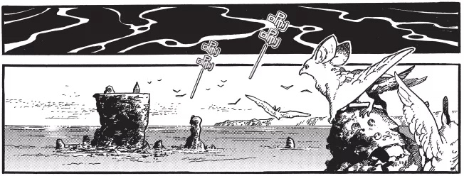看起来像是洪堡企鹅与兔子的结合体。通往栖息地的路被人为地阻断了,因此需要在魔法师的帮助下穿过蛇背洞窟过冬。法版中称它为“merfin”,“mer-”来自于法语单词“海”,“-fin”则来自于“狮鹫”。