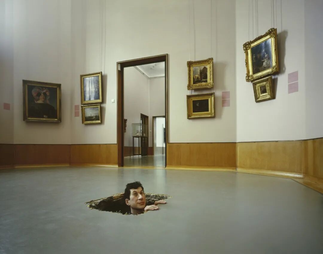 他的作品也总是嘲讽与戏谑、意外与隐喻。人们看到他的作品,会在真实和荒诞之间受到冲击,有时会心一笑,有时会感受到冒犯。