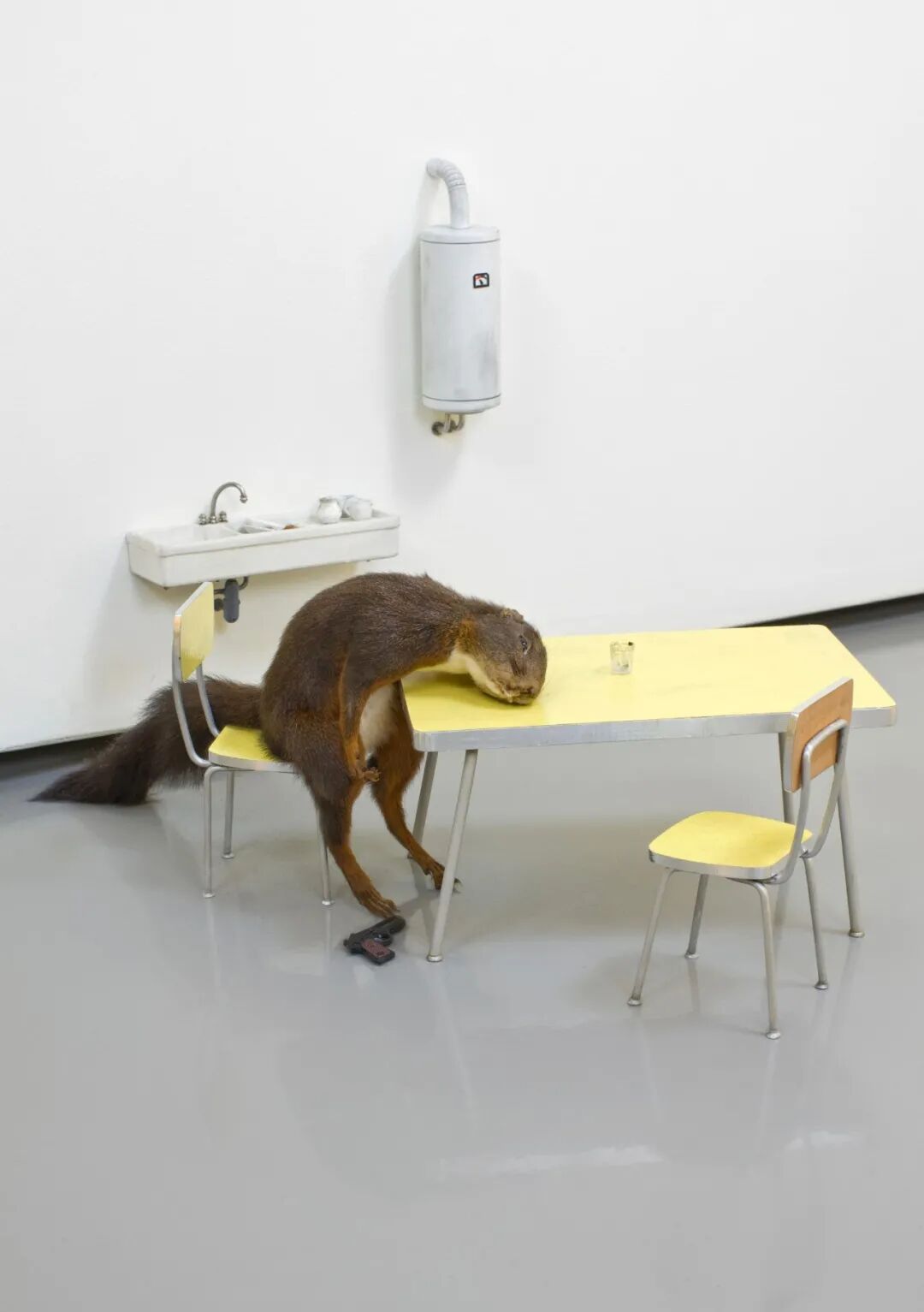 《哔嘀哔嘟哔嘀咘》以一只松鼠的自杀现场,彷佛被生活的重担压垮,引发观众重新思考死亡与无常。